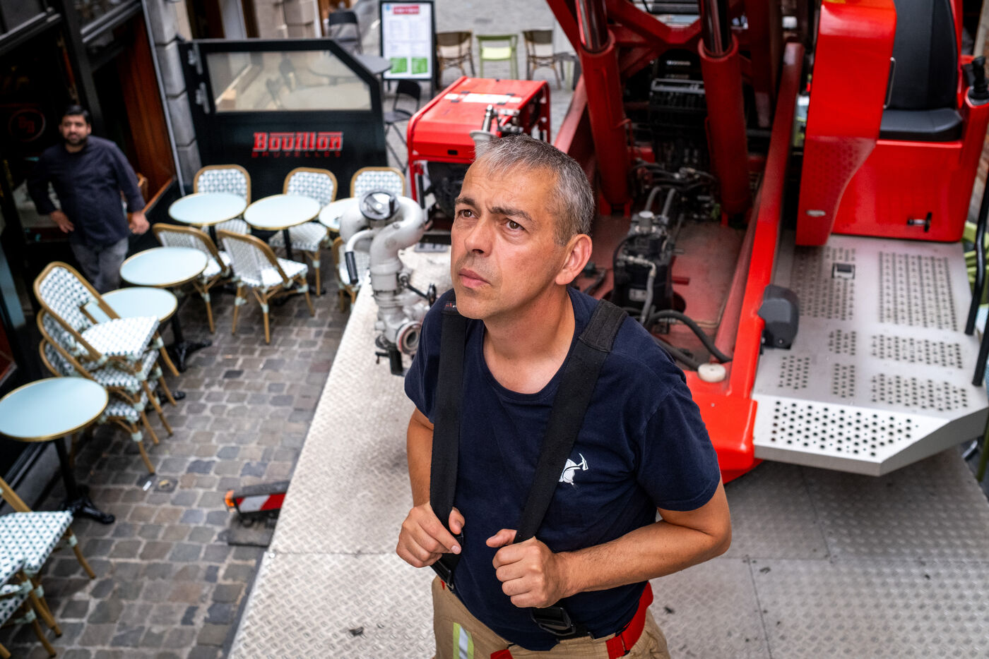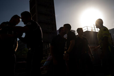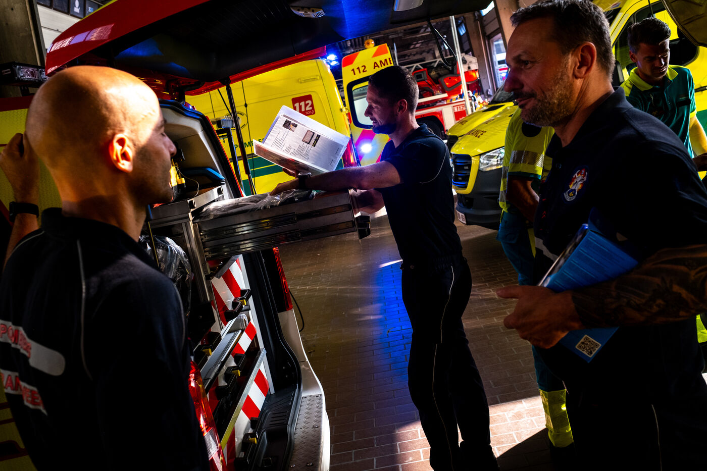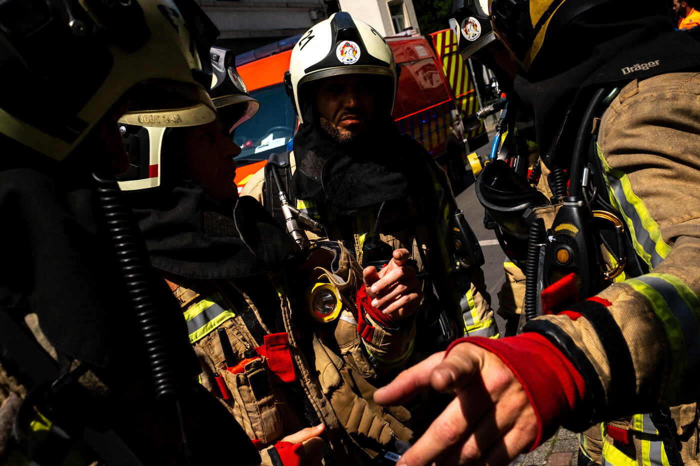 Thursday, 8 a.m., Brussels wakes up under bright sunshine at the end of June. At the 21st company, the shift begins with the traditional 24-hour handover. The fifty or so firefighters joke around until Sergeant Major Francotte imposes himself with authority: “Silence, please!” It is time for the morning roll call, conducted in French and punctuated by a few “Aanwezig!” (“Present!”) in Dutch. Major information, such as the weather—“very hot today, no drill, take care of yourselves and stay hydrated”—is systematically repeated in Dutch for everyone.