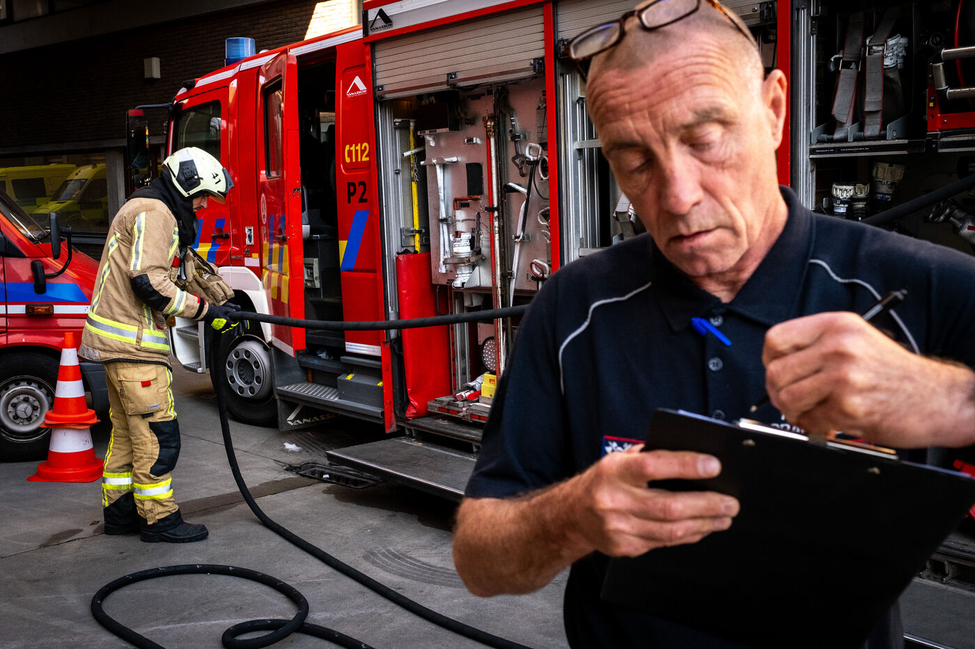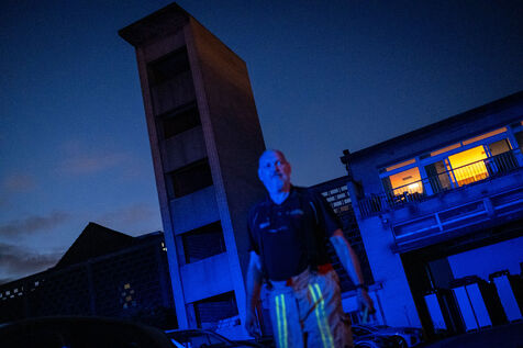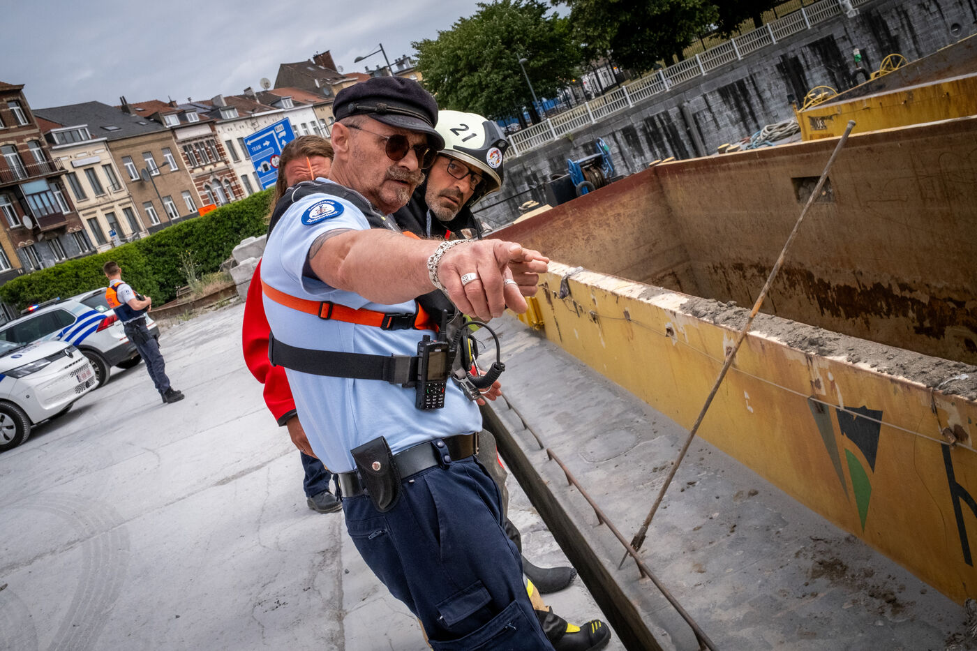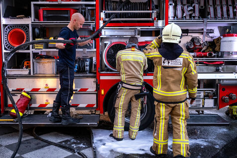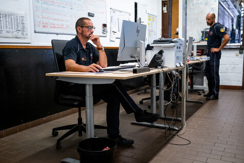 “It’s crazy that it’s already early afternoon and there still hasn’t been a single callout today.” One should never speak too soon. At 1:30 p.m., the first dispatch comes in: a gas leak at a company in Saint-Gilles. Officer Vandermergel mentions the many old buildings in the capital, non-compliant, often without smoke detectors and sometimes in complex social contexts.