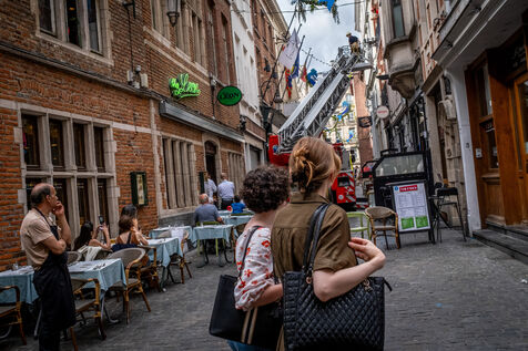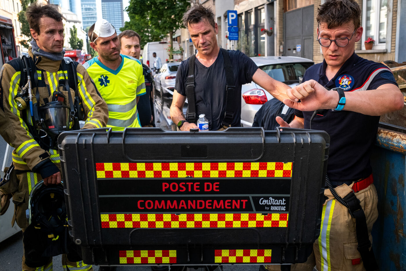 « C’est fou qu’on soit en début d’après-midi et qu’il n’y ait eu encore aucune intervention aujourd’hui. » Il ne faut jamais parler trop vite. À 13 h 30, première sortie : une fuite de gaz dans une entreprise de Saint-Gilles. L’officier Vandermergel évoque les nombreux bâtiments anciens de la capitale, non conformes, souvent sans détecteurs de fumée et, parfois, dans des contextes sociaux complexes.