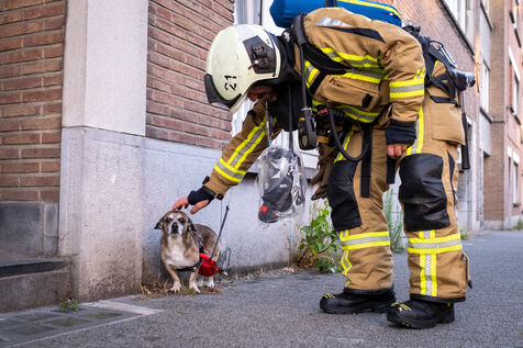 Une quinzaine de minutes plus tard, l’incendie est circonscrit et le bâtiment désenfumé. La famille vivant dans l’appartement où s’est déclaré l’incendie devra être relogée. L’officier y raccompagne le père pour lui permettre de récupérer quelques effets personnels. Son logement est indemne exceptée la cuisine, ravagée par l’extincteur à poudre ; elle arbore une teinte bleuâtre insolite, tandis que la gazinière réduite en cendres révèle l’origine du départ du feu : une casserole oubliée sur le feu… Dans les ambulances, l’état des personnes blessées est stable. Le transfert vers les différents hôpitaux de Bruxelles s’organise, en veillant à ne pas séparer les proches.