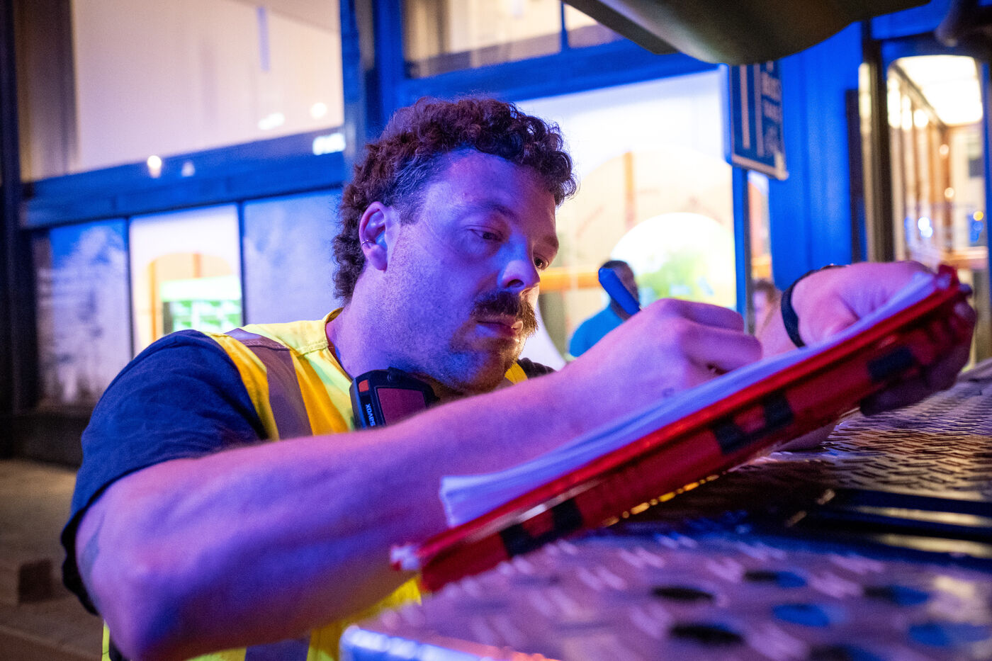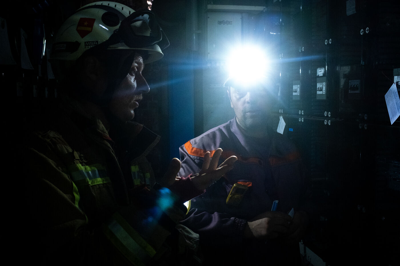 L’officier Jalet supervise la ventilation, cruciale pour éviter d’attiser d’éventuels foyers résiduels : « On va utiliser d’énormes ventilateurs pour vider la fumée du parking mais il faut avant tout s’assurer qu’il n’y a plus de départ de feu possible. Autrement, la ventilation ne fera que l’attiser. » Les silhouettes des pompiers se dessinent à nouveau dans le voile dense de fumée. Ils ressortent et donnent le signal à l’officier. Le vrombissement des ventilateurs branchés à des groupes électrogènes fait un boucan d’enfer.