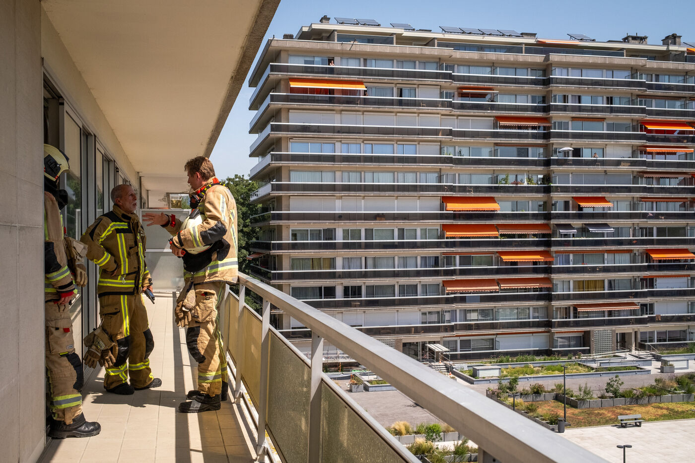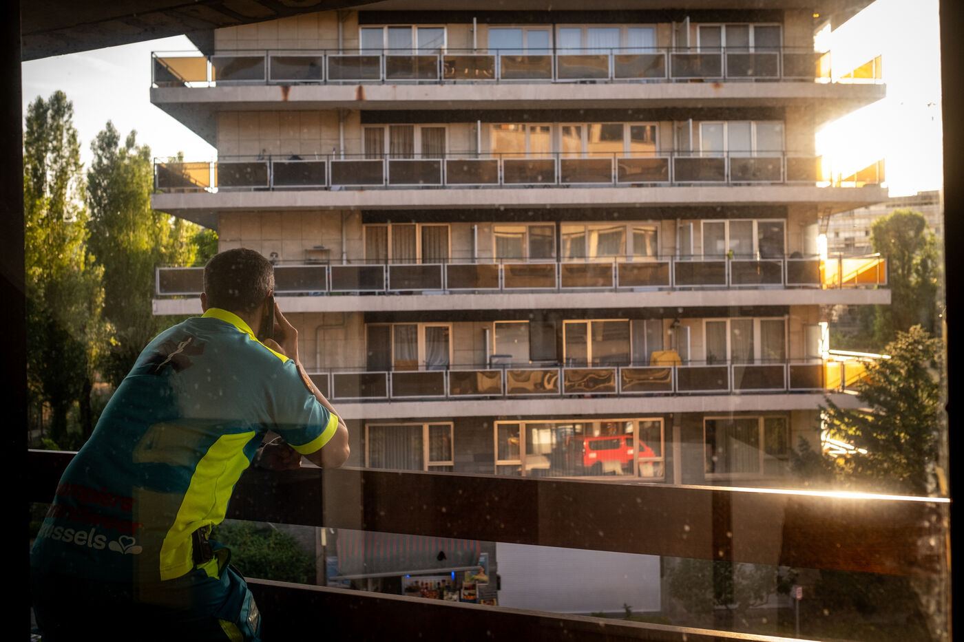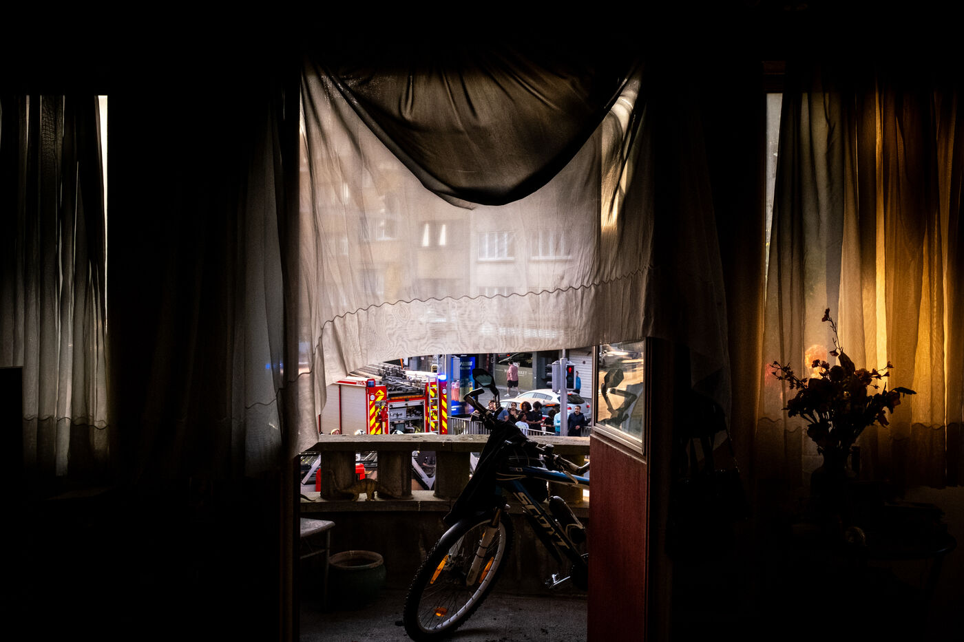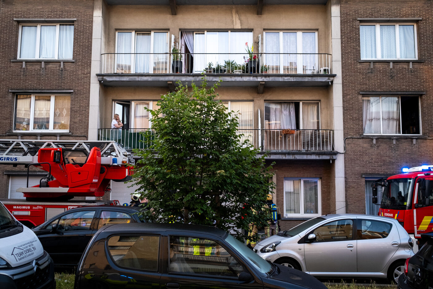 The radio announces an apartment fire in Berchem-Sainte-Agathe, with several victims to be rescued from the building. “The woman from the burning apartment says she left after leaving her son behind, whose bedroom is reportedly in flames.” The information arrives bit by bit, each detail adding to the gravity of the situation.