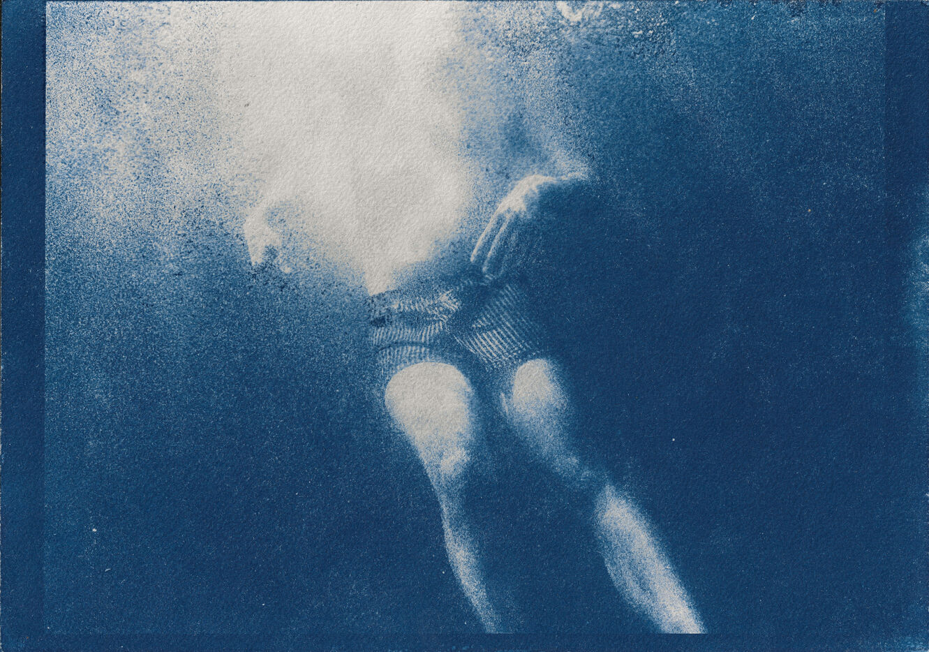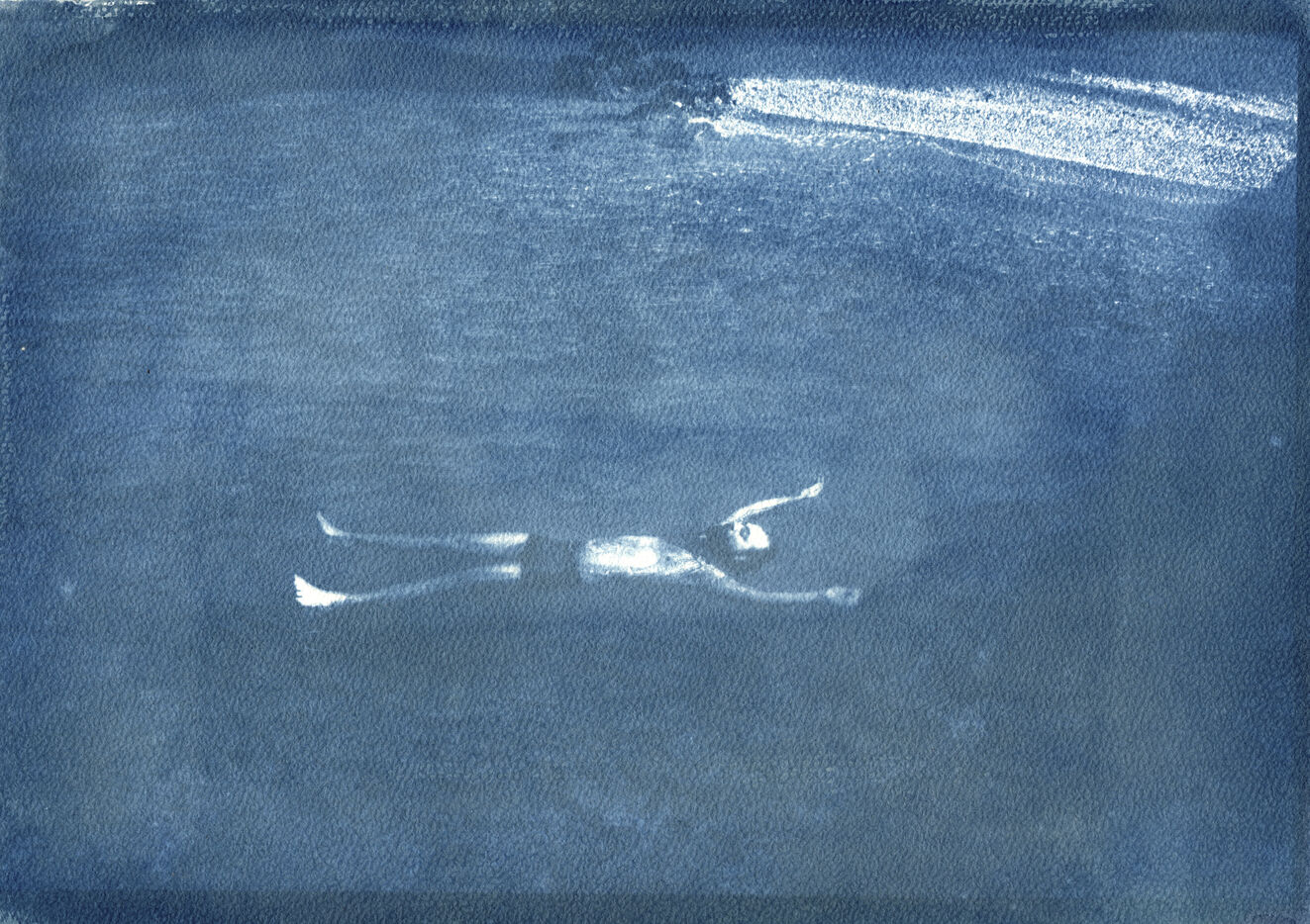 His colour is blue. Waves are blue. Cyanotypes are blue. His favourite activities: swimming, floating and sailing in the blue – of the waves. A series about waves, movement, freedom, travel, blue and about him.