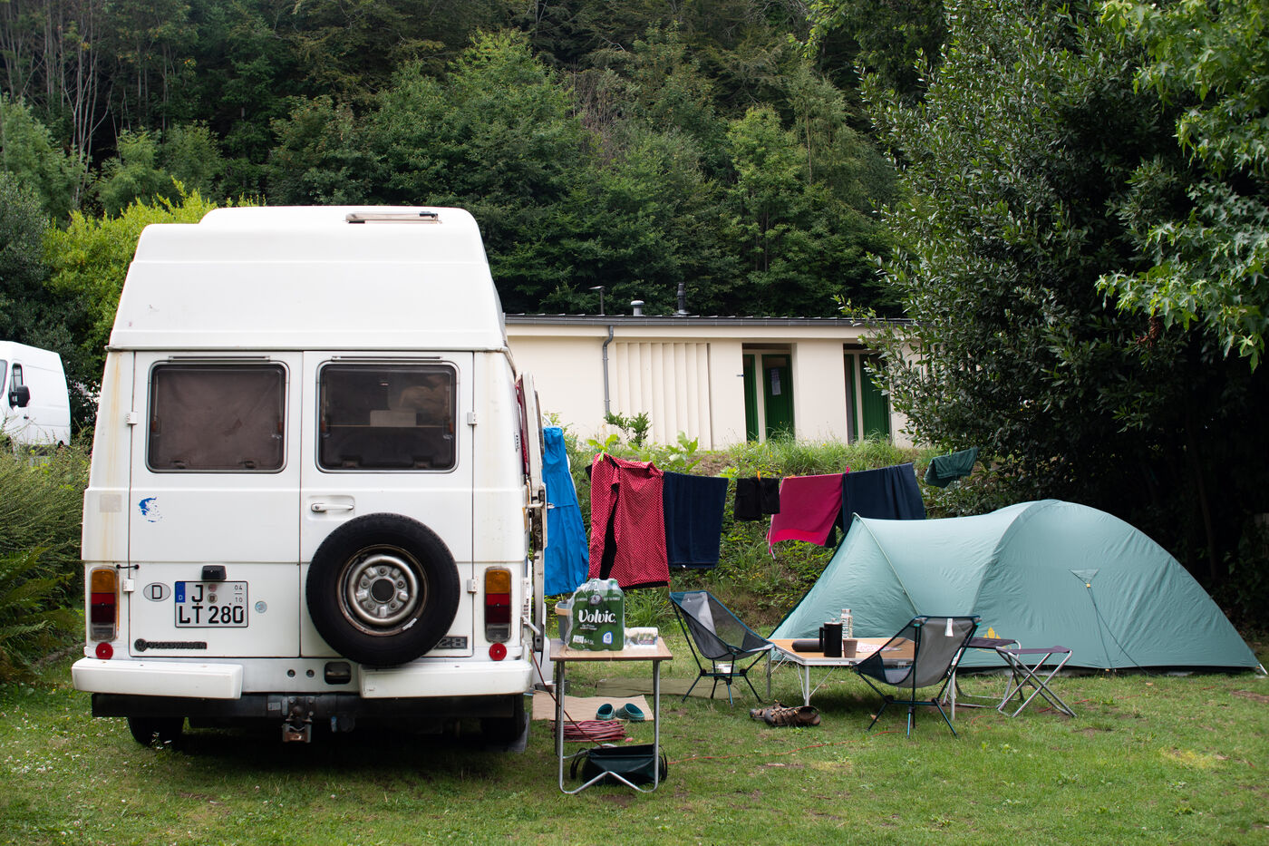Reportage sur la question du camping "à l'ancienne". Le camping municipal du bois du seminaire est un camping dans la nature proche du centre ville de Quimper. Les seuls emplacements disponibles sont destinées aux tentes ou véhicules.