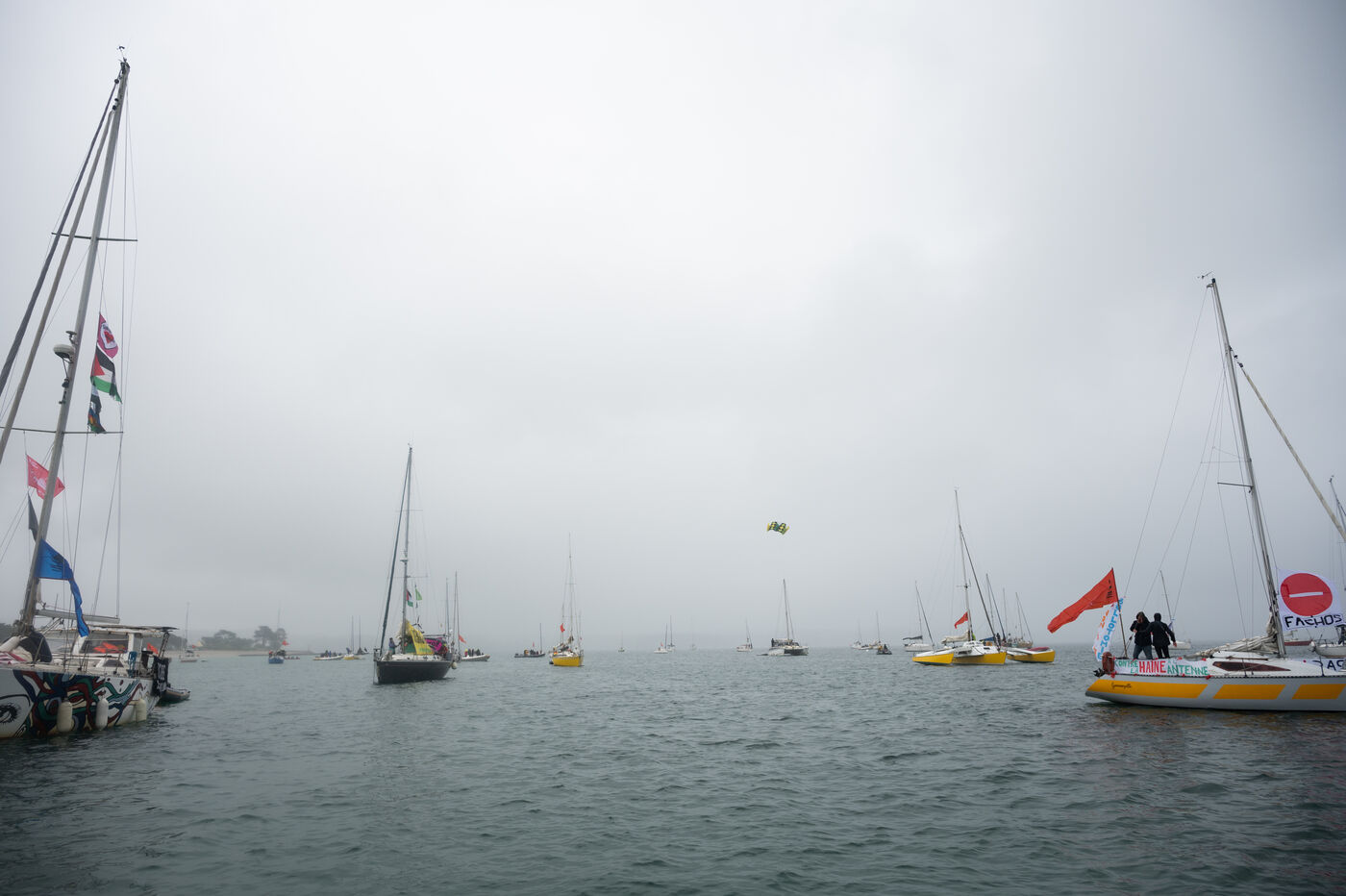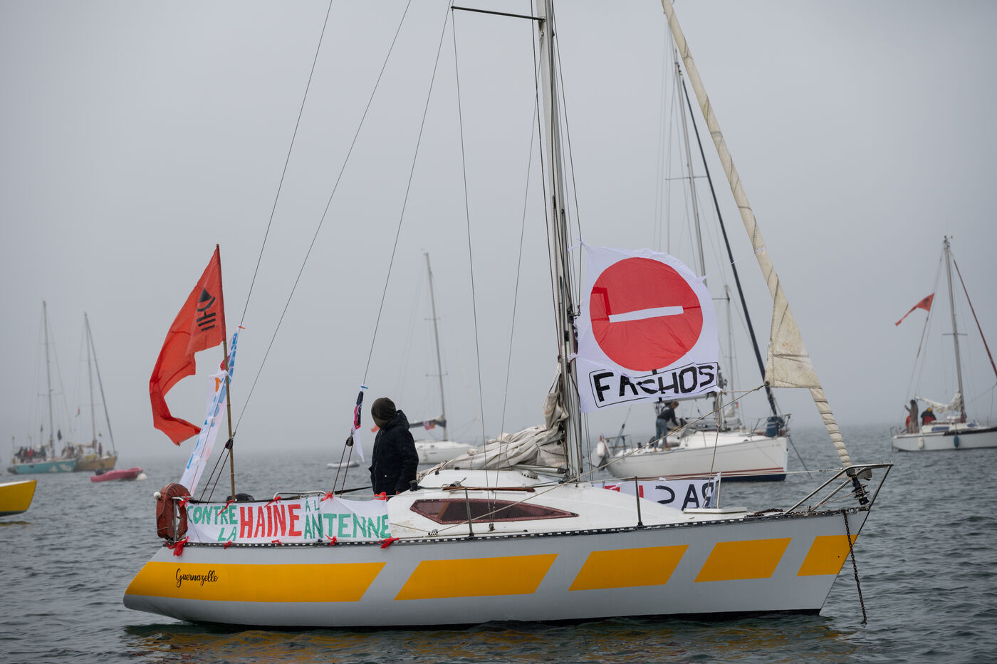 A mobilisation at sea could not take place around the island of Loc'h, owned by Vincent Bolloré on 5 October 2024 because of the weather and this 24 May 2025 because of a ban from the prefecture. The ‘Raising Sails Against the Bolloré Empire’ mobilisation is finally taking place in Fouesnant in Finistère, with a maritime demonstration involving more than fifty boats, and a land demonstration on the Cap-Coz beach. At the same time, an ‘anti-fascist’ village was set up inland at Guiscriff.
