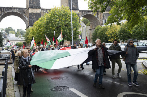 Demonstration on 4 October 2025 in Morlaix in support of Palestine and the Global Sumud Flotilla humanitarian flotilla.