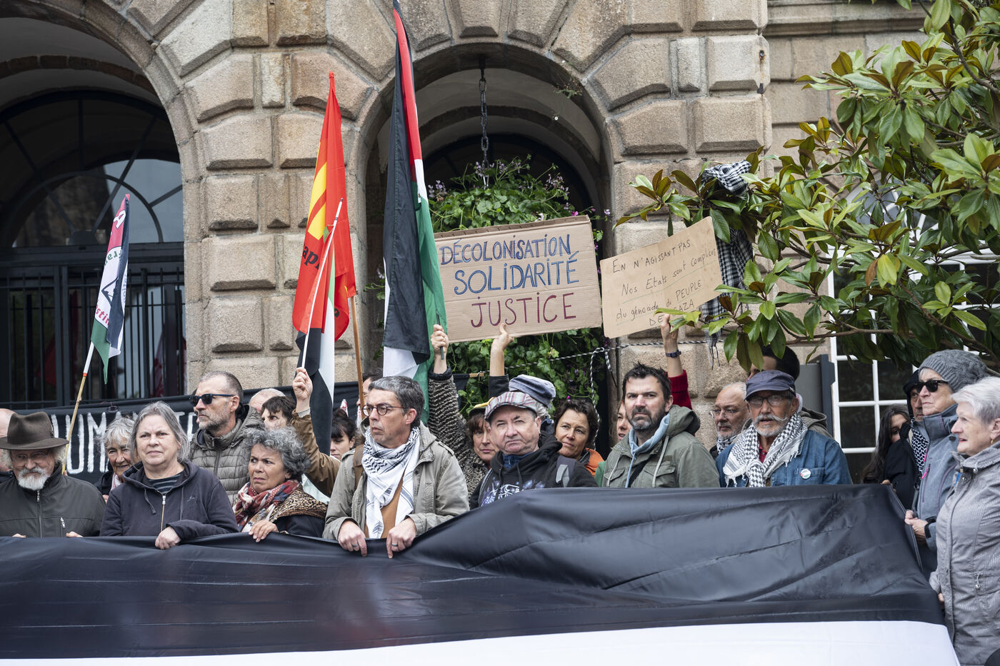 Manifestation du 4 octobre 2025 à Morlaix en soutien à la Palestine et à la flottille humanitaire Global Sumud Flotilla.