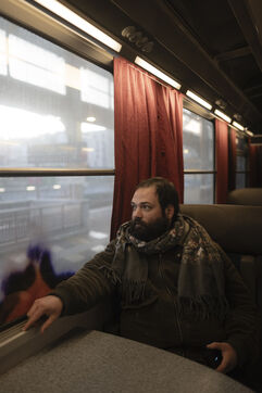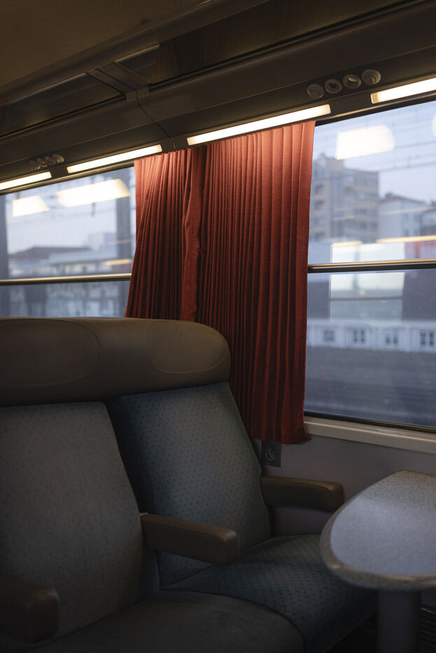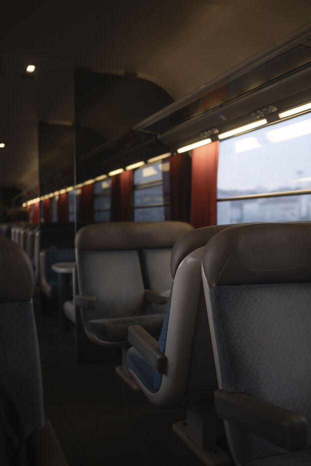Images d'illustrations d'un homme dans la rame d'un vieux TER en France.
