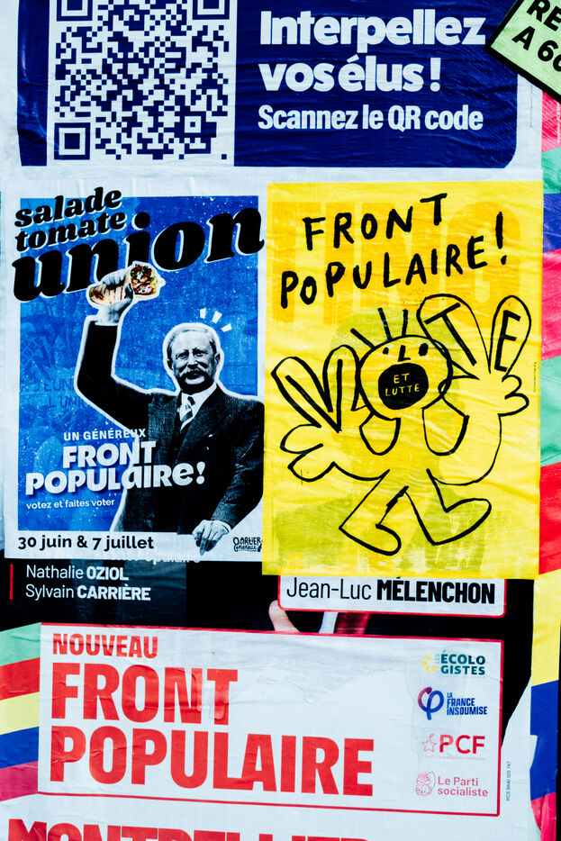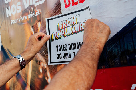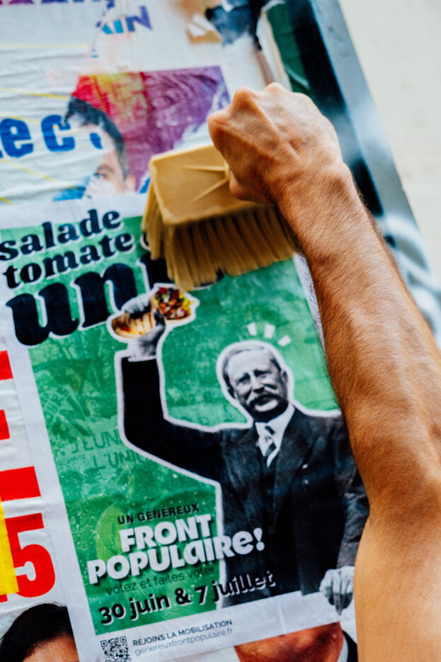 Des bénévoles se mobilisent et arpentent les rues de la ville en fin de journée pour recouvrir les panneaux d'affichage de ces posters. Même si la liste LFI est arrivée en tête dans la ville lors des élections européennes, beaucoup ont peur d'une victoire du Rassemblement National pour les prochaines élections législatives.