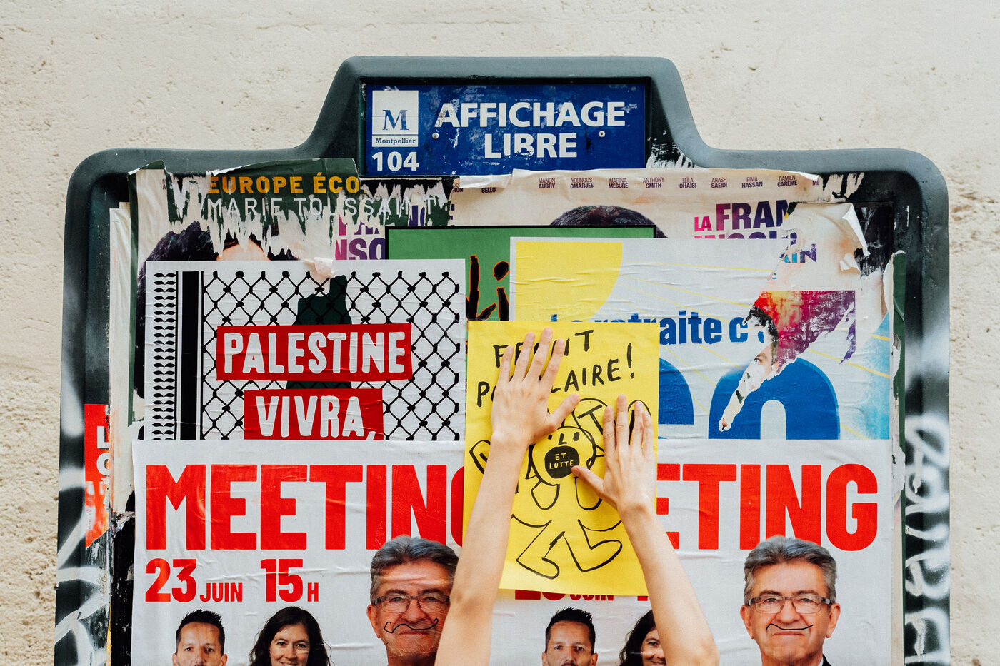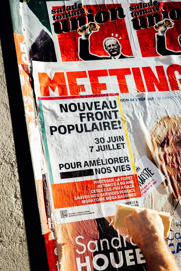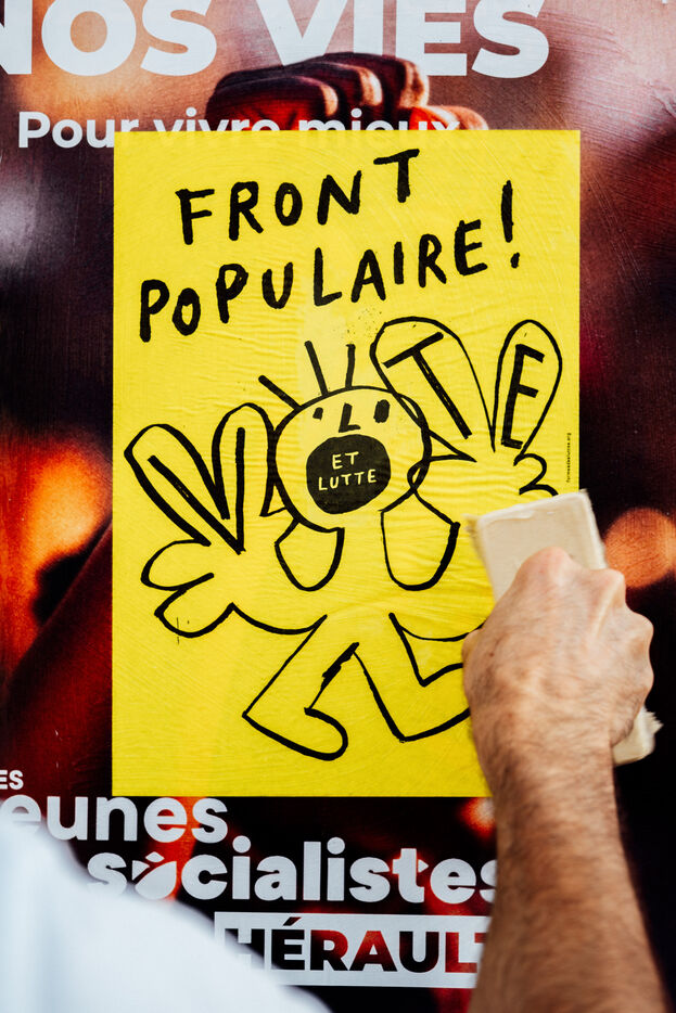 Collage d'affiches pour le Nouveau Front Populaire à Montpellier
