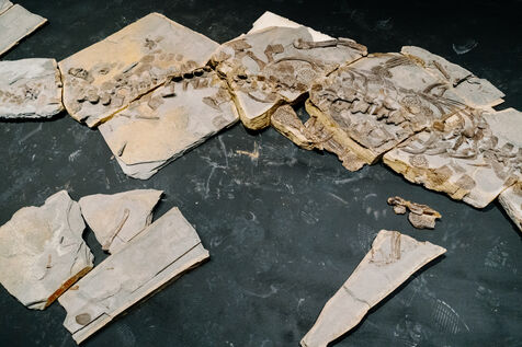 A crocodile fossil dating back to the Jurassic period is assembled in front of the press at the Lodève Museum. This marine crocodile fossil was unearthed during excavations carried out between 2017 and 2020. It took six months of restoration work by the Kraniata company to reveal the details of the bones. Measuring nearly 5 metres in length, this exceptional specimen will be on display from 18 October 2025 to 15 March 2026.