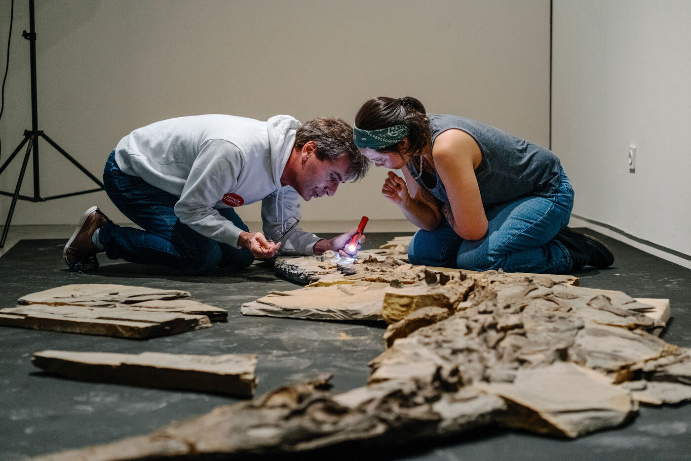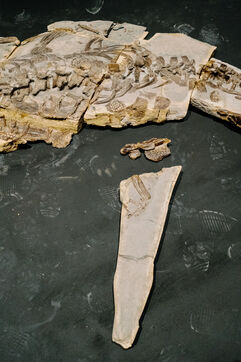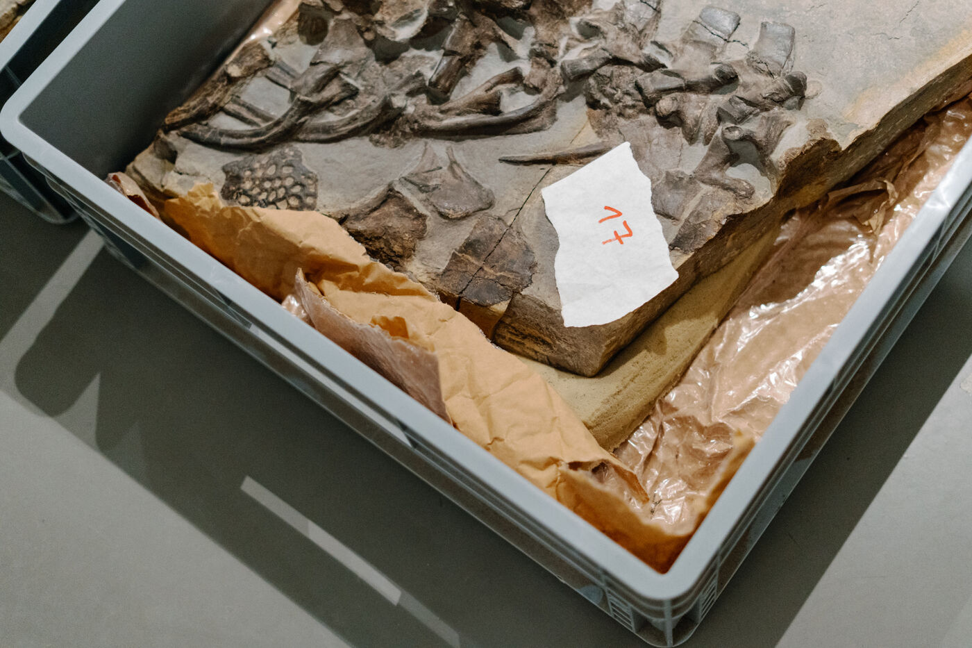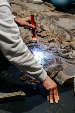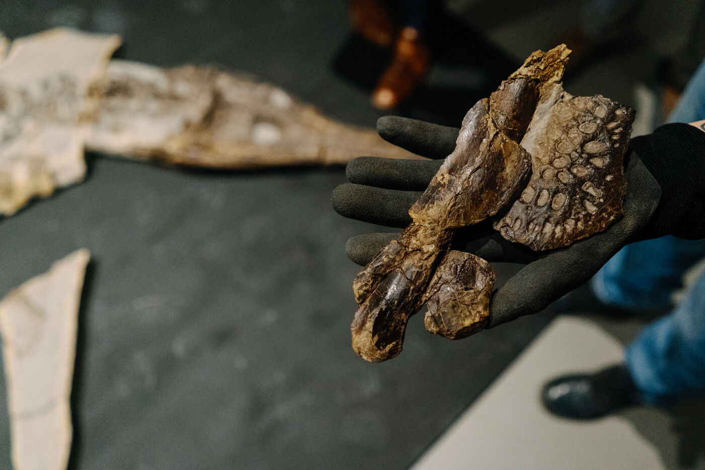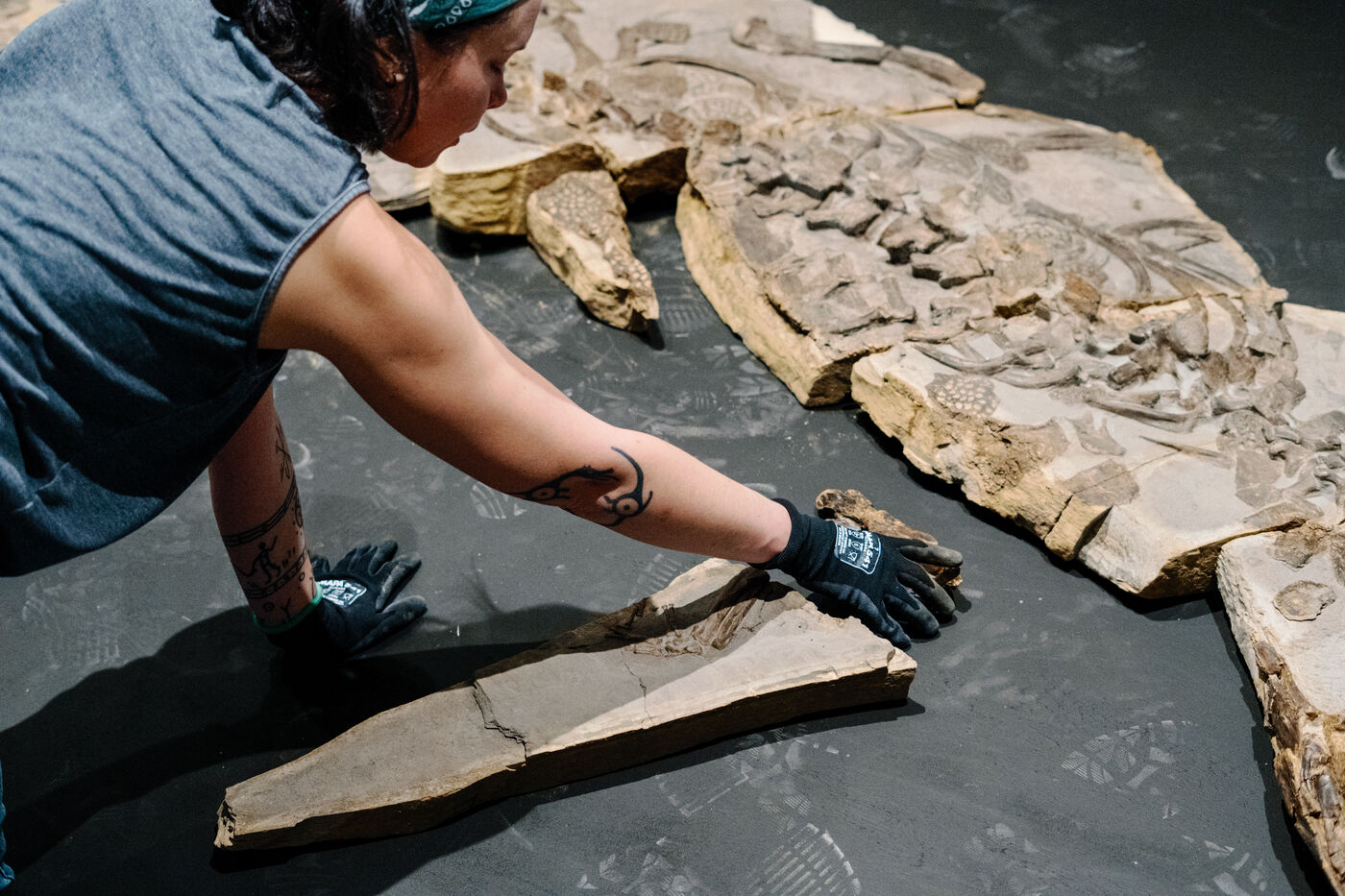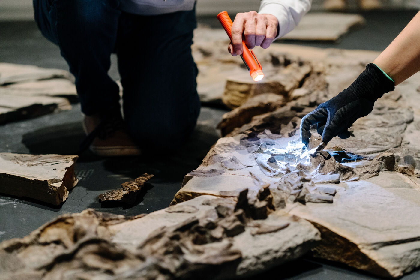 Un fossile de crocodile datant du jurassique est assemblé devant la presse au Musée de Lodève. Ce fossile de crocodile marin a été mis à jour lors de fouilles organisées de 2017 à 2020. 6 mois de restauration par la société Kraniata ont été nécessaires pour mettre au jours les détails des ossements. Long de près de 5 mètres, ce spécimen exceptionnel est exposé du 18 octobre 2025 au 15 mars 2026.