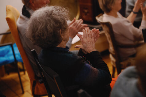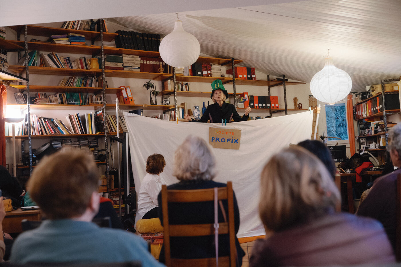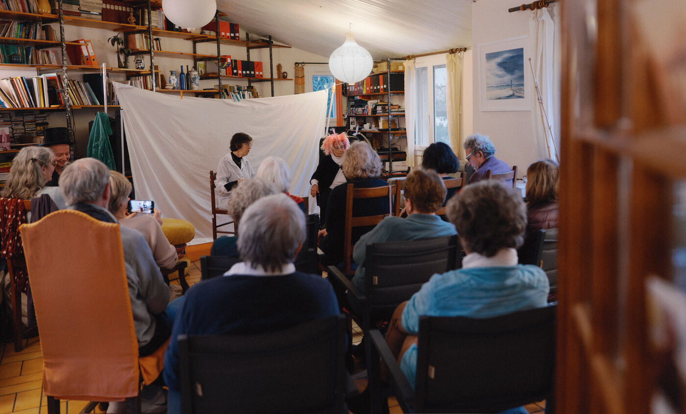 In a living room transformed into a stage, Anne (68), Catherine (67), Solange (90), Claudine (74), and Pierre (68), members of the association La Vie Nouvelle (LVN), rehearse a forum theater play dedicated to issues of sustainability and ecology. The rehearsal takes place in front of other members and family and friends, before they take the stage in front of an audience of strangers.