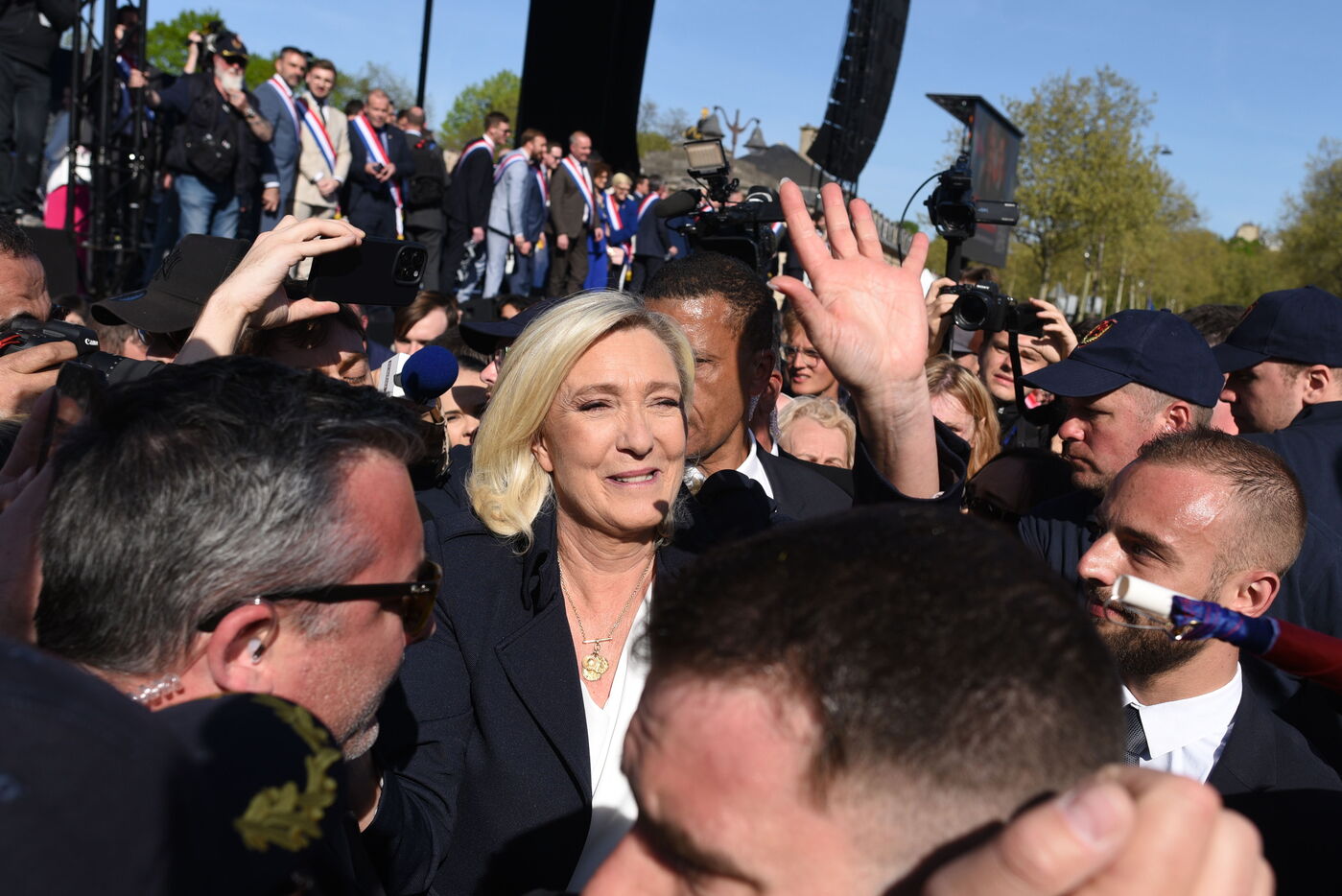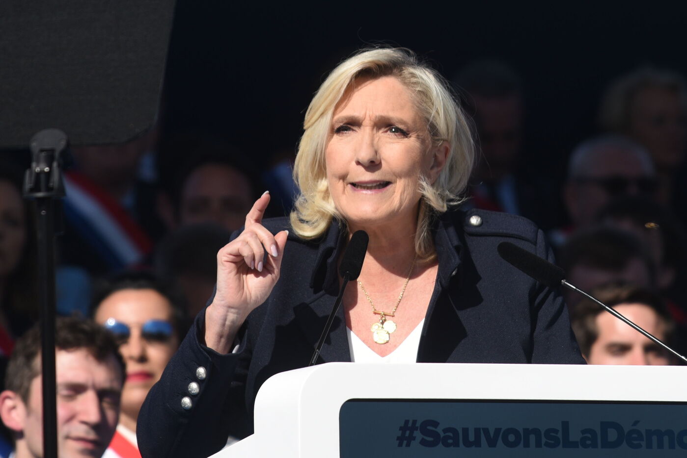 Thousands rally in Paris to support Marine Le Pen after election ban
