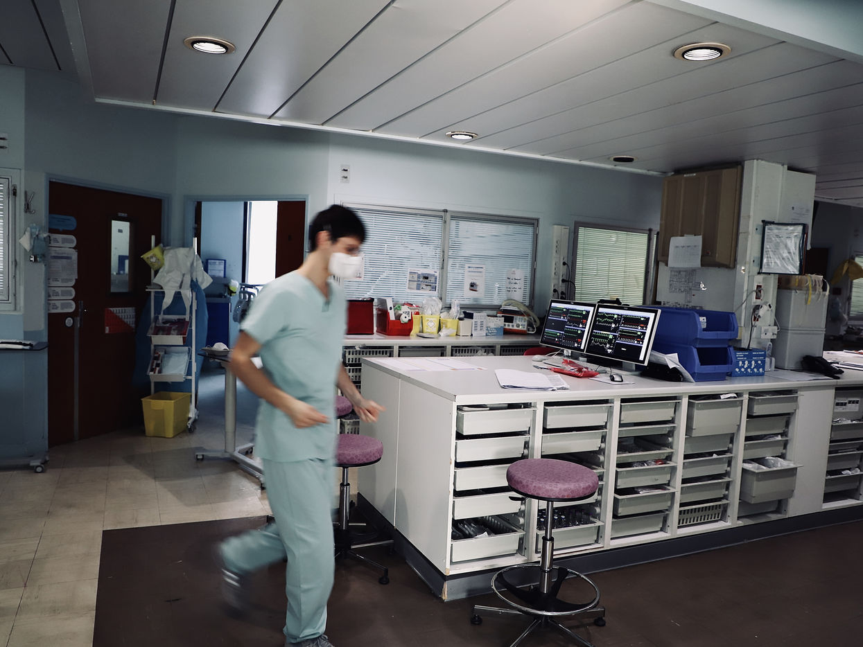 Patients admitted here often presented severe symptoms, sometimes progressing to respiratory distress and requiring intensive care. The recovery room is a striking example: normally used for post-operative neurosurgery, it had, just two weeks earlier, been transformed to host the most critical COVID-19 patients — paralyzed, unable to breathe on their own, sedated at the final stage of the illness. Ten days ago, on the day this report was made, the same room was used to receive post-ICU patients — those who had survived.