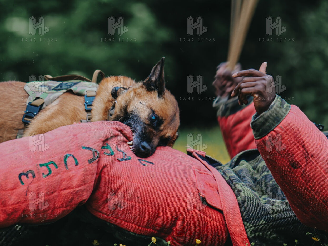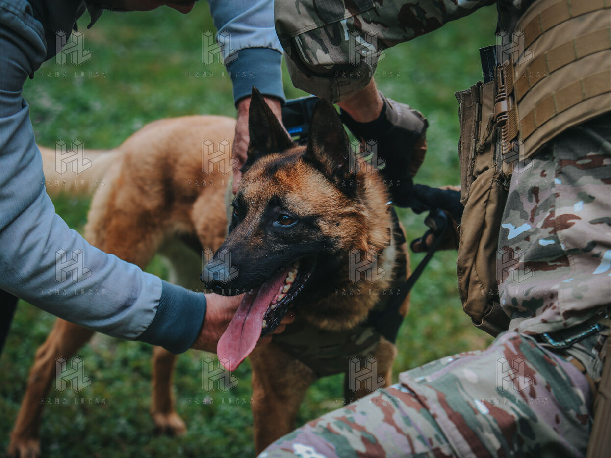 Two other dogs — Prya and Baki — also took part in the demonstration, showcasing the same training method developed by the CPA20. The presentation was divided into three segments: explosive detection, tactical approach via drone guidance, and threat neutralization.
