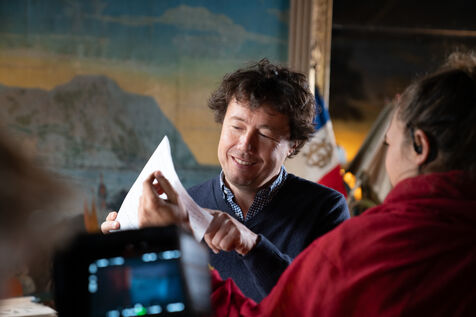 Photographs from the film shoot in October 2023, with André Dusssolier, Sabine Azema and Thierry Lhermitte in the title roles.