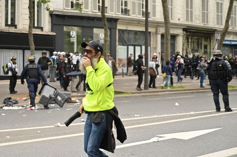 In a demonstration that brings together the traditional demands of workers, there is nevertheless a growing tug-of-war between demonstrators and the forces of law and order.
