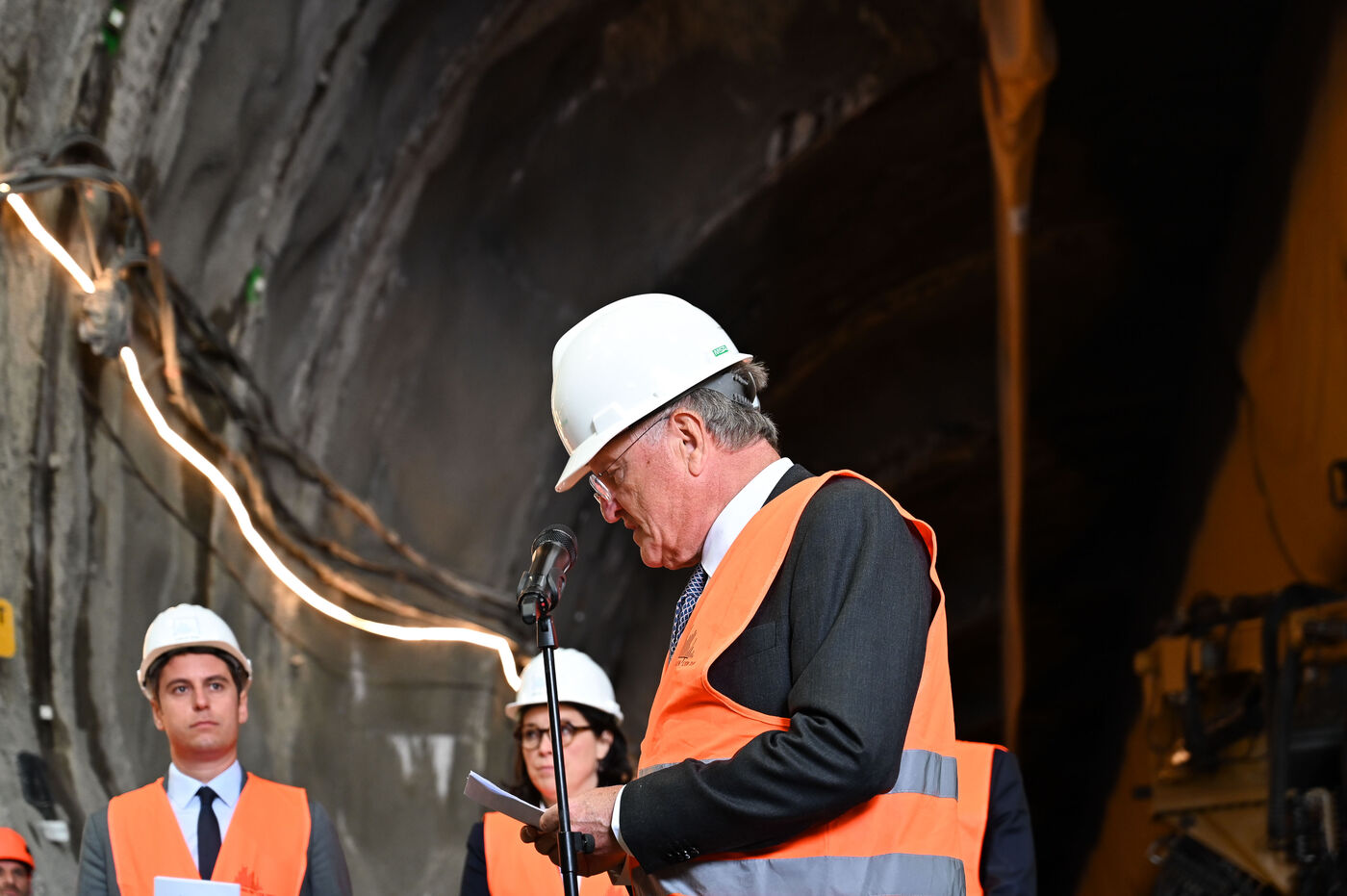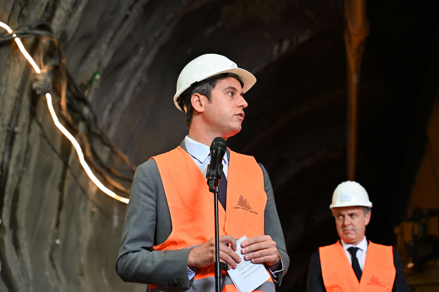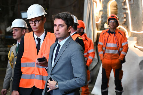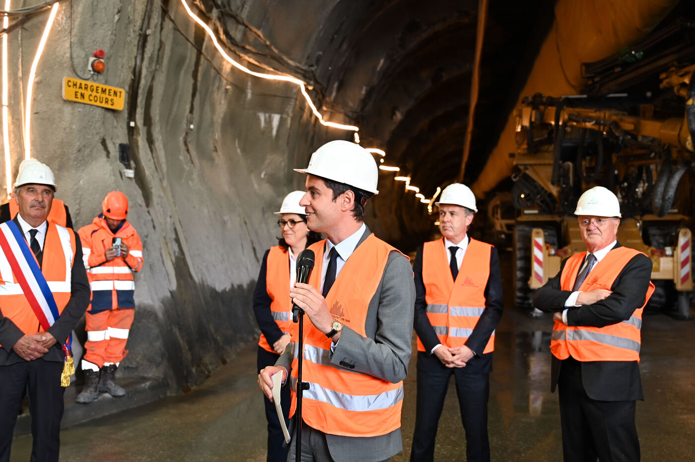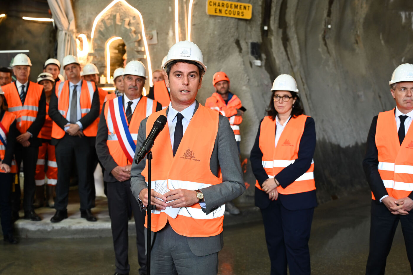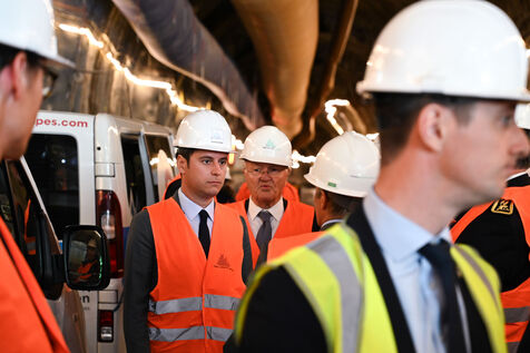 Le Premier ministre Gabriel Attal en déplacement sur le chantier de la ligne Lyon-Turin