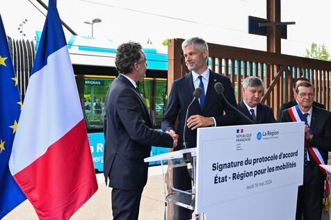 On Thursday, May 16, 2024, Christophe BÉCHU, Minister for Ecological Transition and Territorial Cohesion, visited Brignais station in the Rhône département. Together with Laurent WAUQUIEZ, President of the Regional Council, he signed the agreement protocol for the State-Region Plan Contract (CPER) for the Auvergne-Rhône-Alpes region.