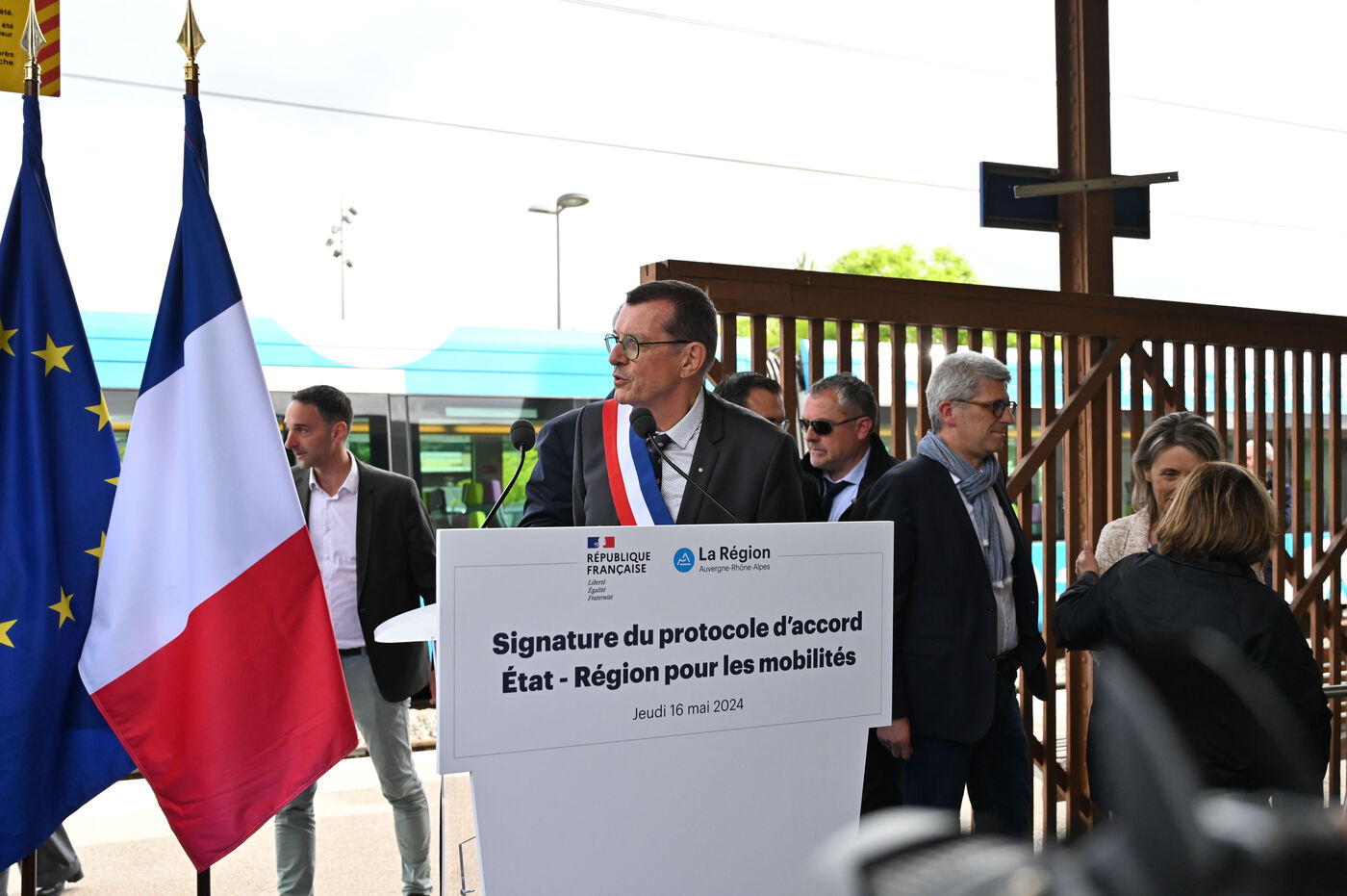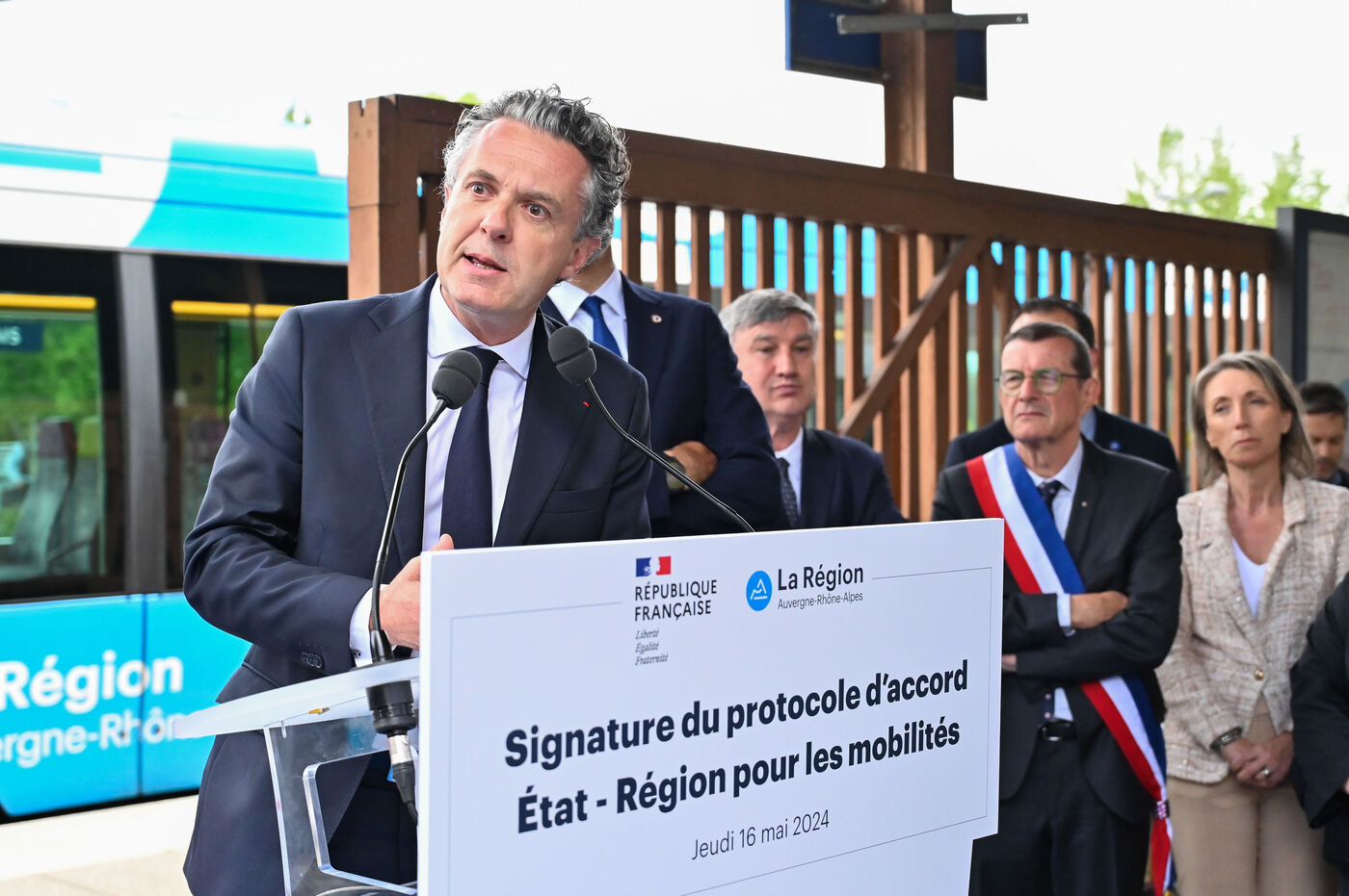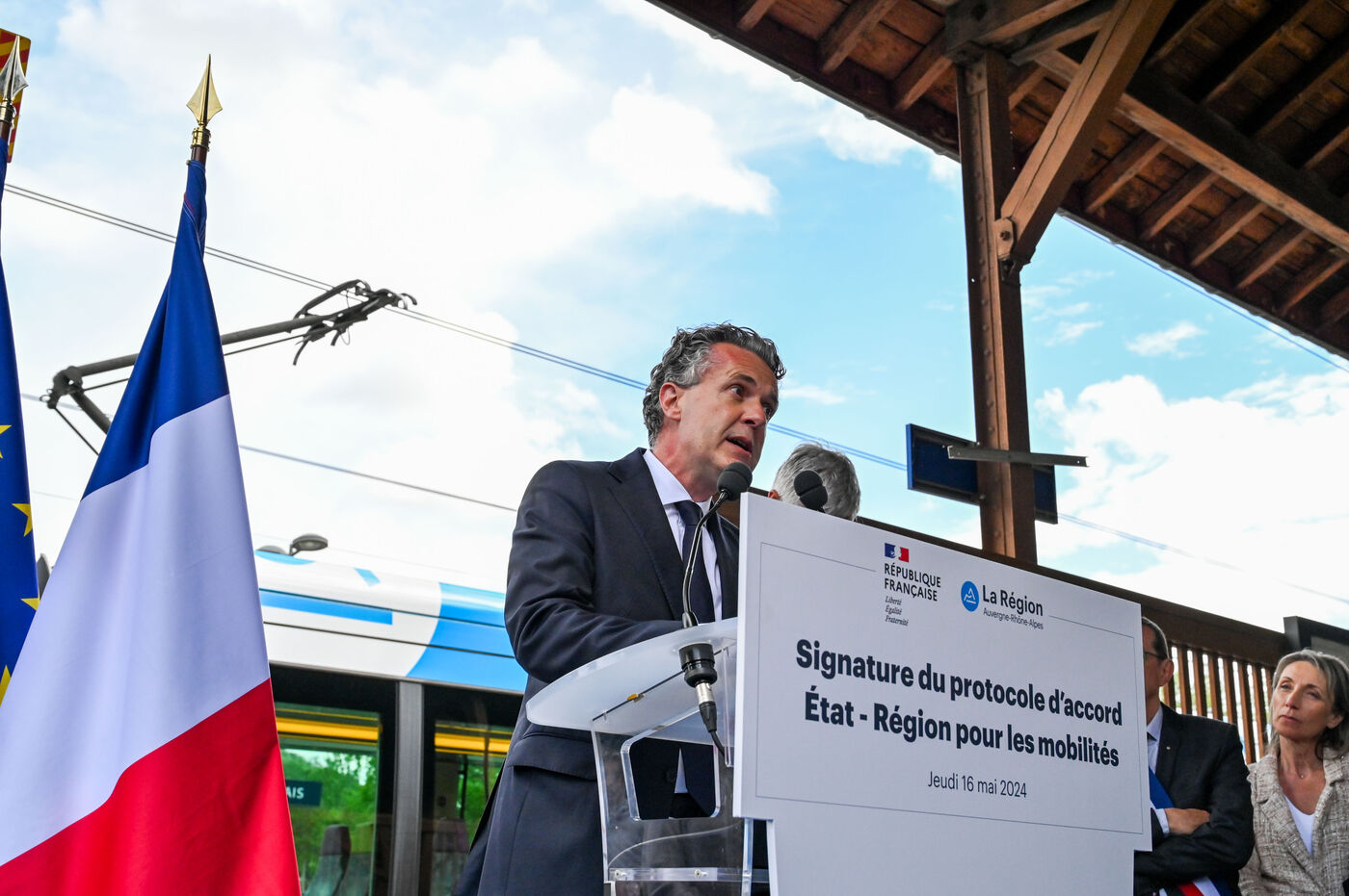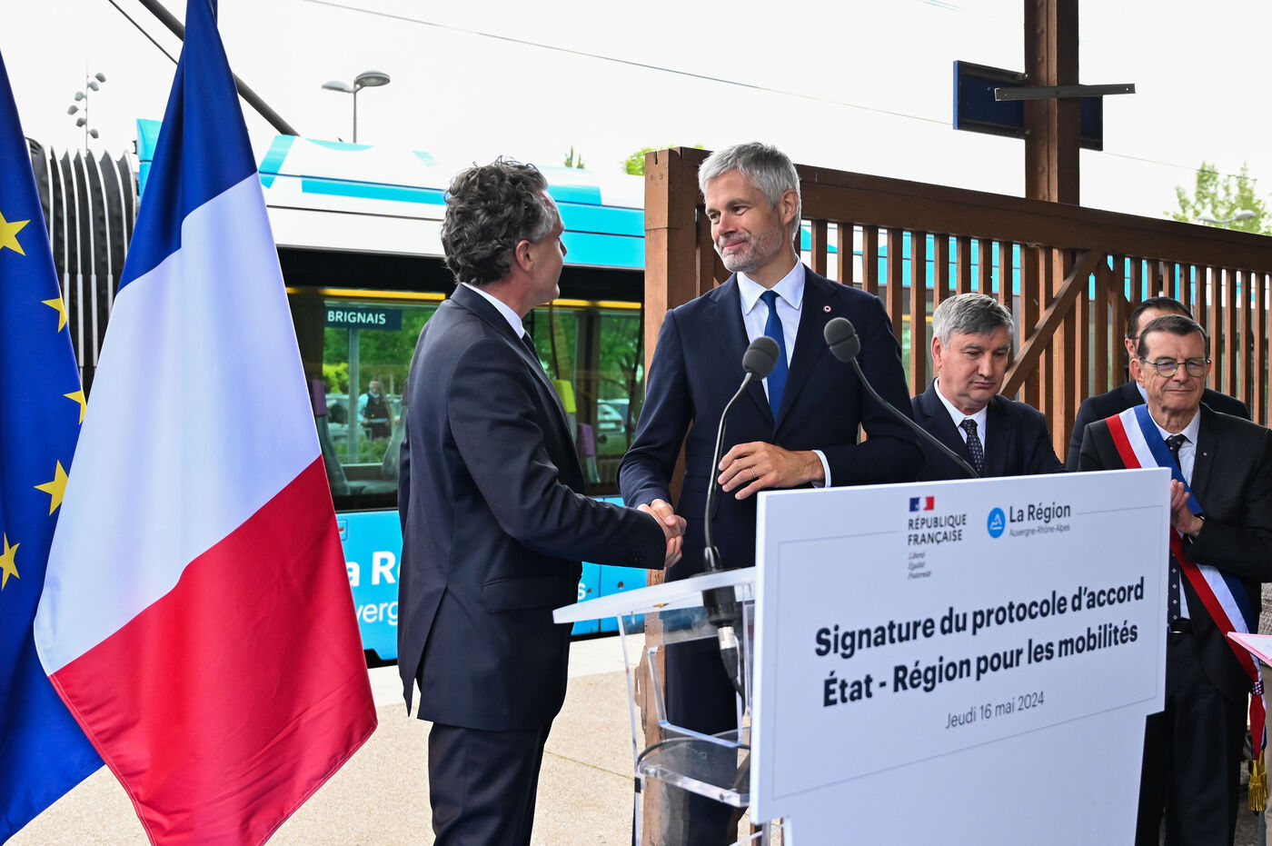 Ce jeudi 16 mai 2024, le ministre d cela Transition écologique et de la Cohésion des territoires, M.Christophe BÉCHU s'est rendu à la gare de Brignais, dans le département du Rhône. En effet, il a signé avec M.Laurent WAUQUIEZ, président du Conseil Régional, le protocole d'accord du contrat de Plan État-Région (CPER) de la Région Auvergne-Rhône-Alpes.