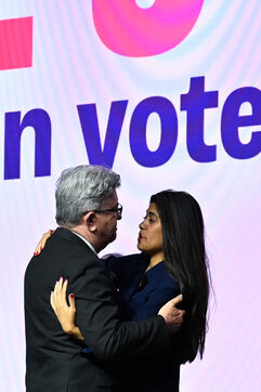 Manon Aubry and Jean-Luc Melenchon, last LFI meeting in Lyon