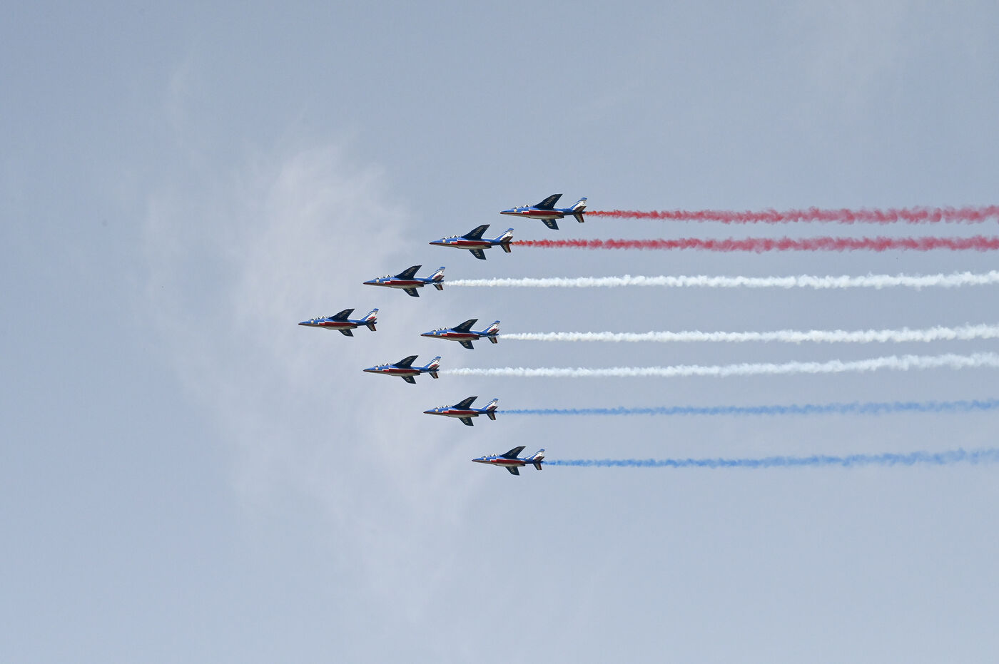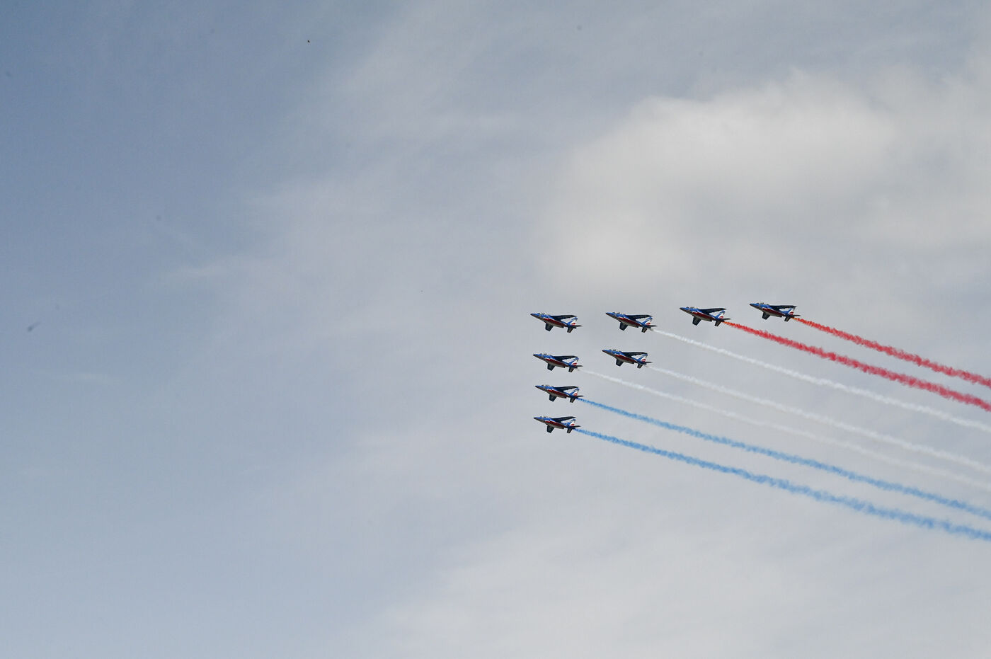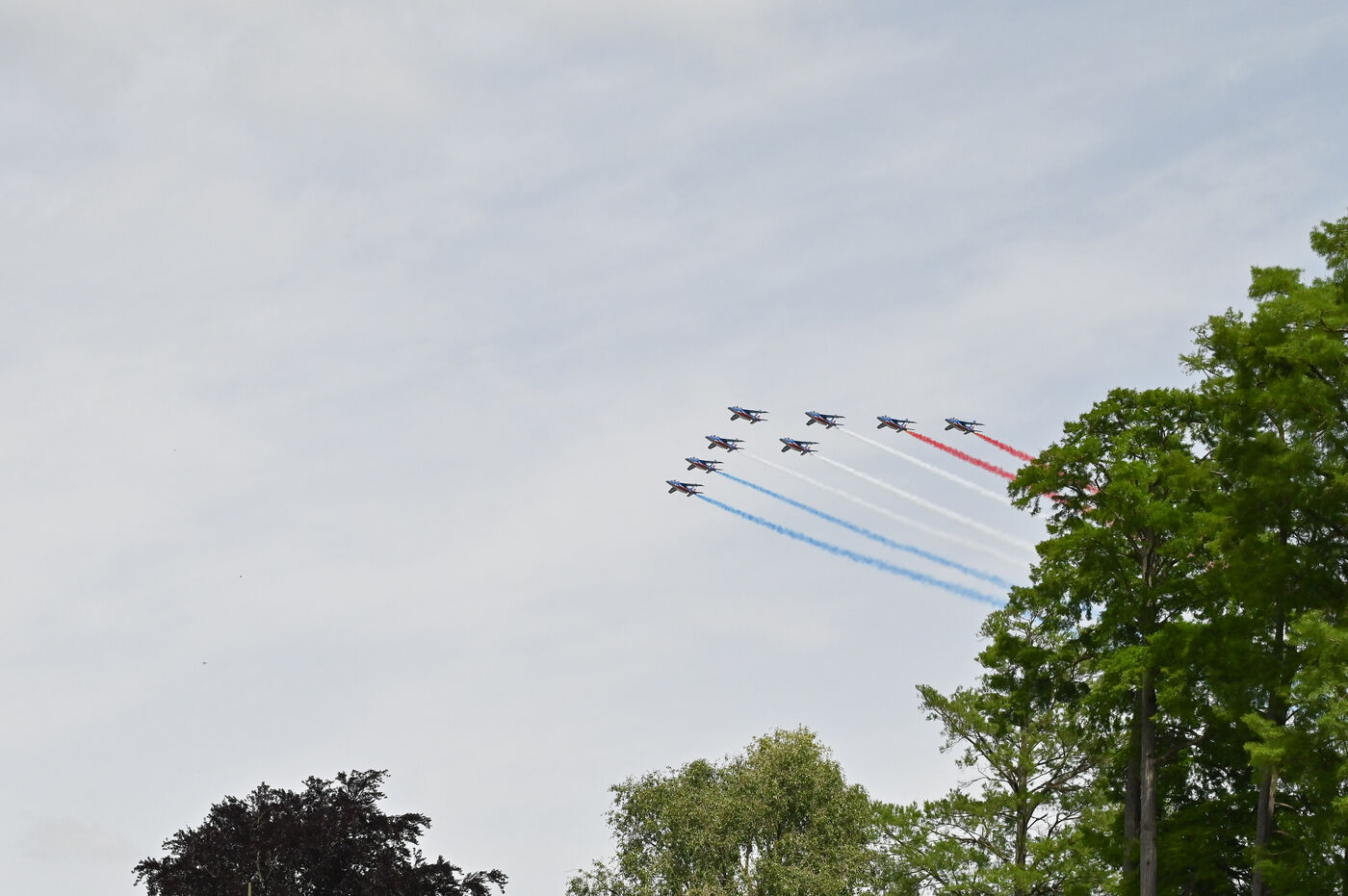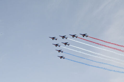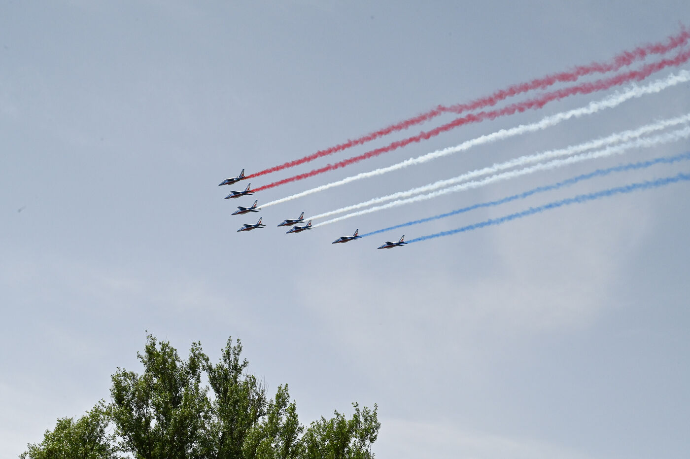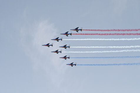 On Sunday June 9, 2024, the Patrol of France flew over Lyon's Tête d'Or Park. The flight was part of the celebration of the 100th anniversary of the Best Workers of France.