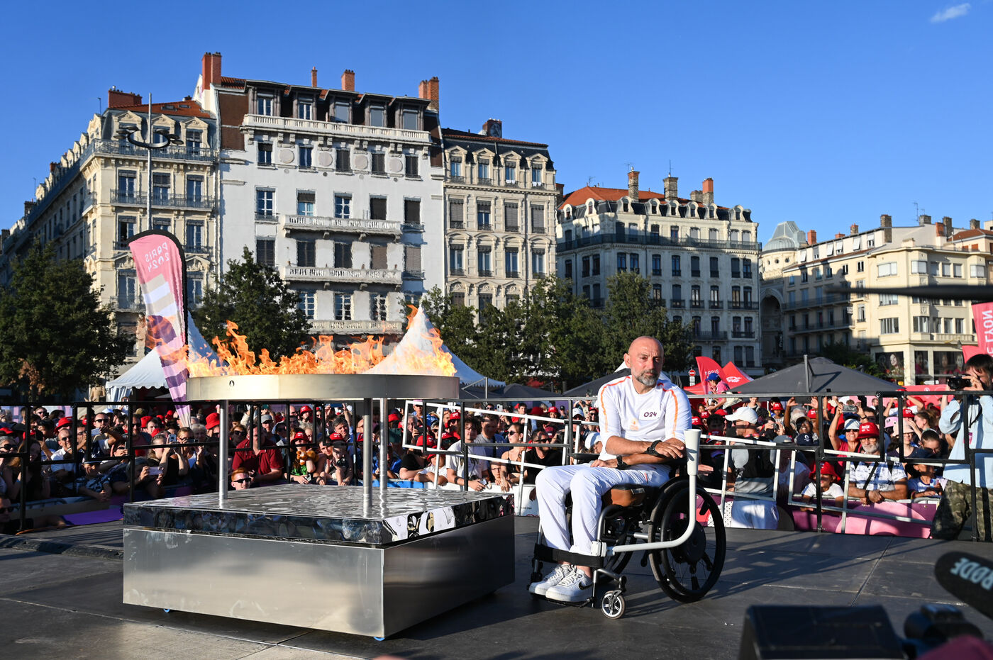 On Monday August 26, Lyon's Place Bellecour welcomed the Paralympic Torch Relay in a festive and committed atmosphere. For the occasion, the square was transformed into a veritable Paralympic village, offering the people of Lyon the chance to discover and experience the various disciplines of the Games. At the heart of the event, sports demonstrations, meetings with athletes and interactive activities allowed the public to immerse themselves in the Paralympic universe.