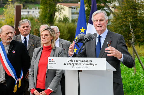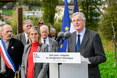 Le Premier ministre Michel Barnier a effectué un déplacement à Givors et à Eveux (Rhône), ce vendredi 25 octobre 2024, sur le thème de l’environnement et de l’adaptation au changement climatique. Une semaine après les intempéries qui ont touché la région, le Premier ministre est allé à la rencontre de commerçants et d’entreprises sinistrés avant de lancer le troisième Plan National d'Adaptation au Changement Climatique.