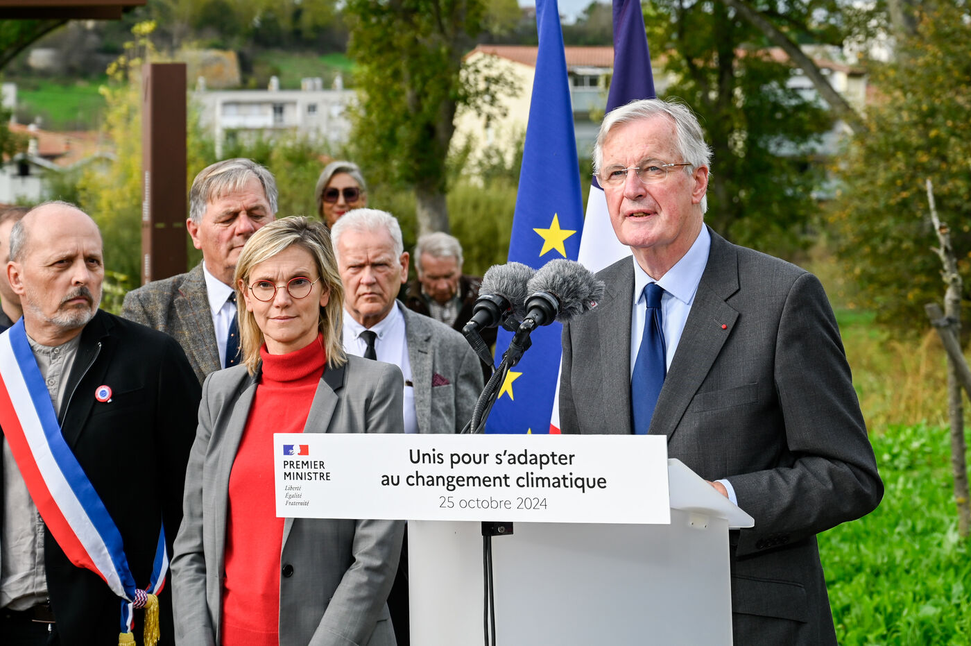 Prime Minister Michel Barnier visited Givors and Eveux ( Rhone) on Friday, October 25, 2024, on the theme of the environment and adaptation to climate change. One week after the bad weather that hit the area, the Prime Minister went to meet with affected retailers and businesses, before launching the third National Plan for Adaptation to Climate Change.