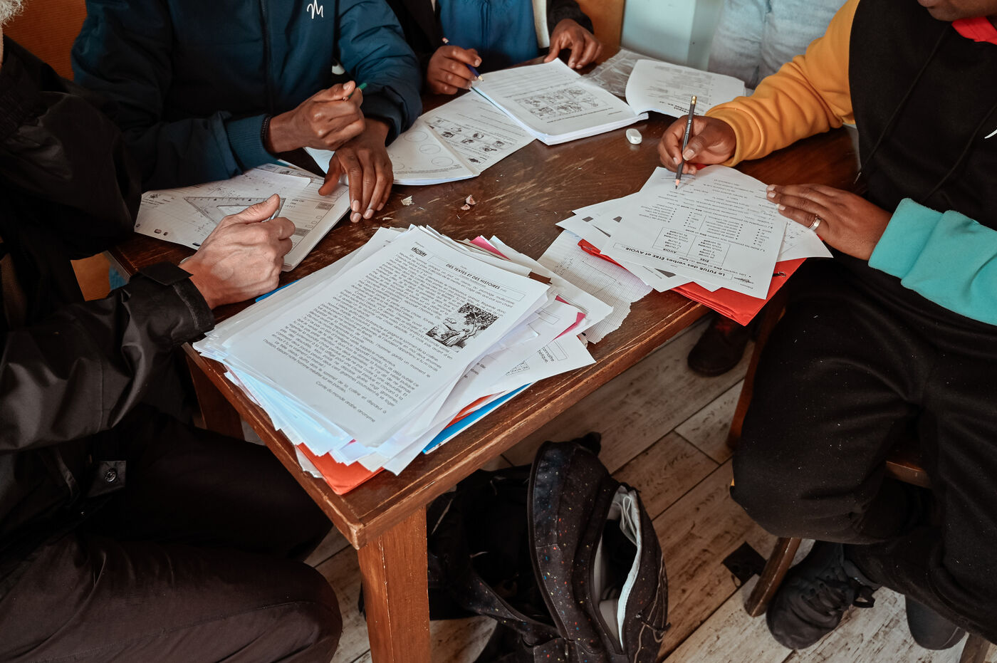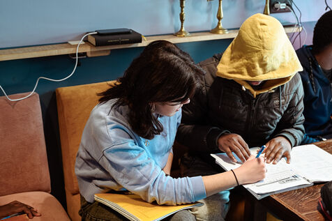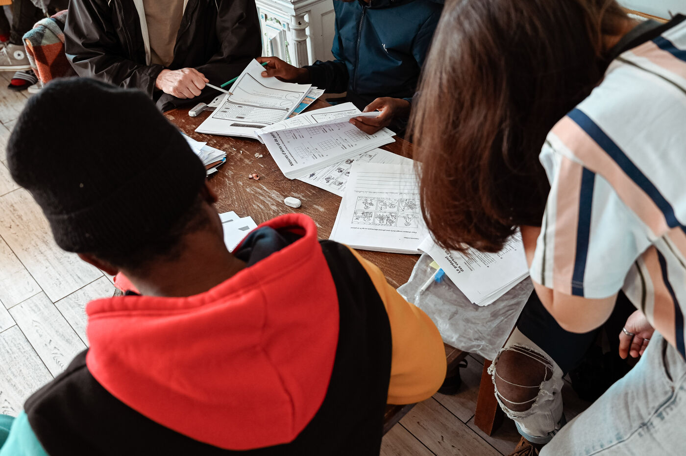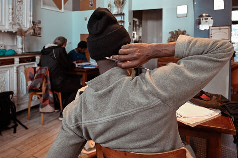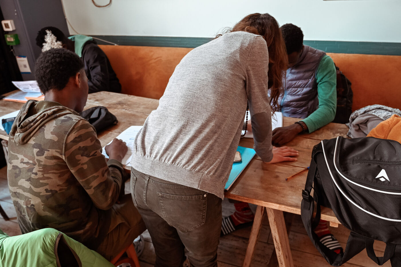 Une séance de soutien scolaire est organisée, ce vendredi 7 mars 2025, pour accompagner les mineurs isolés (occupant les jardins des Chartreux de Lyon) dans leurs apprentissages. Encadrés par des bénévoles, ces jeunes, souvent en attente de régularisation, trouvent ici un espace pour réviser, apprendre le français et avancer dans leur parcours scolaire.