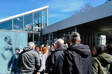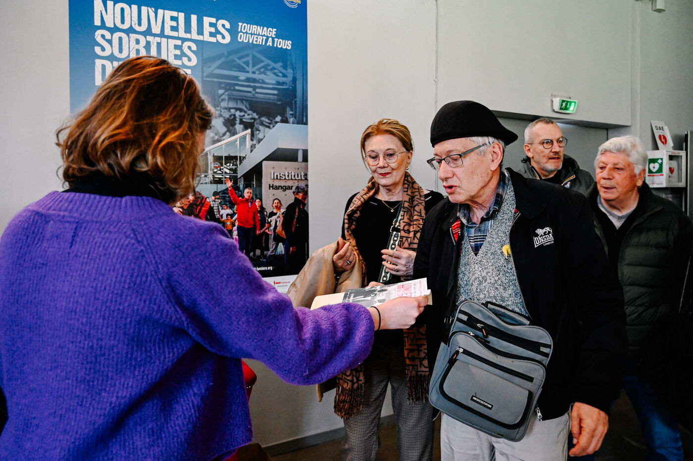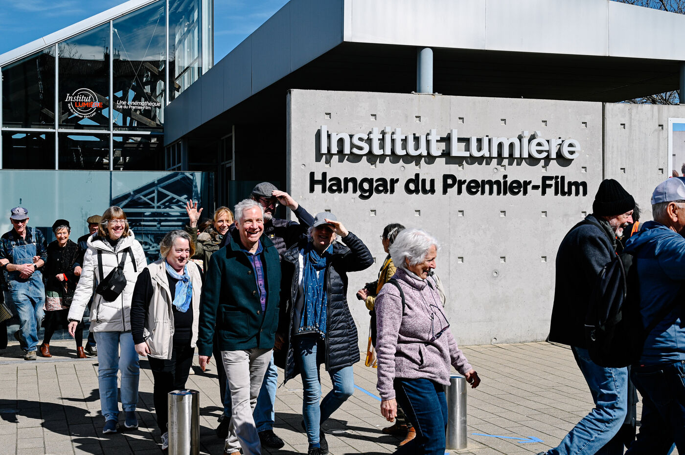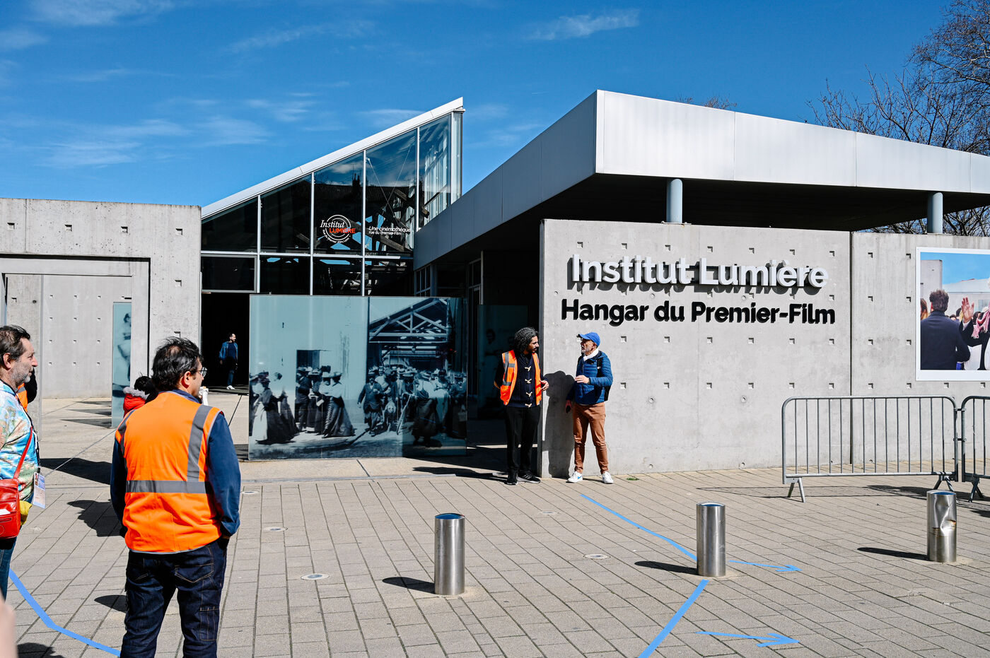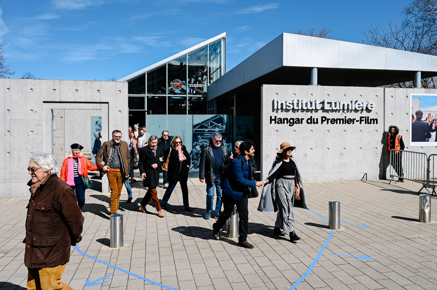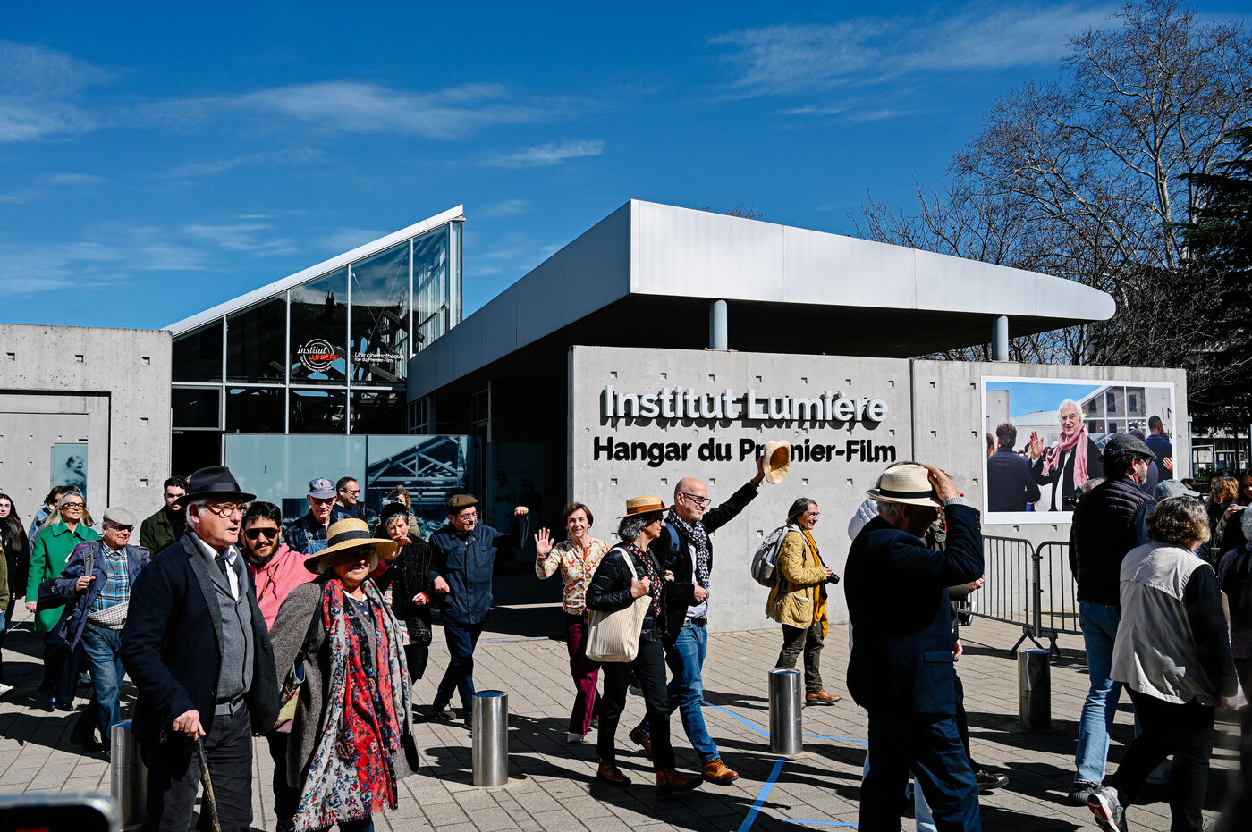 Pour l’occasion, des figurants ont été invités à rejouer la scène mythique de la sortie des ouvrières et ouvriers, redonnant vie à ce plan fondateur de l’histoire du cinéma.