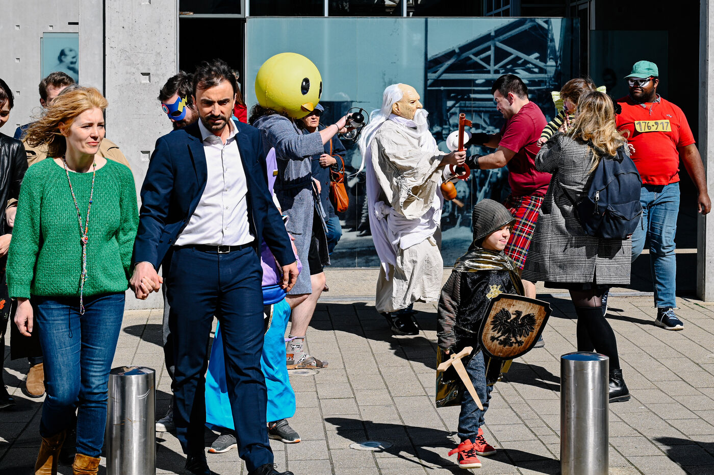 For the occasion, extras were invited to re-enact the mythical scene of the workers exiting the factory, breathing new life into this founding shot in the history of cinema.