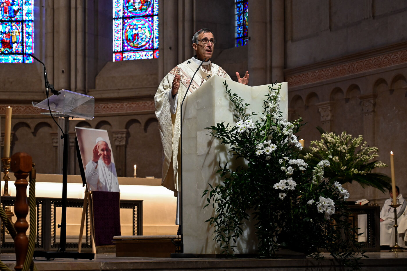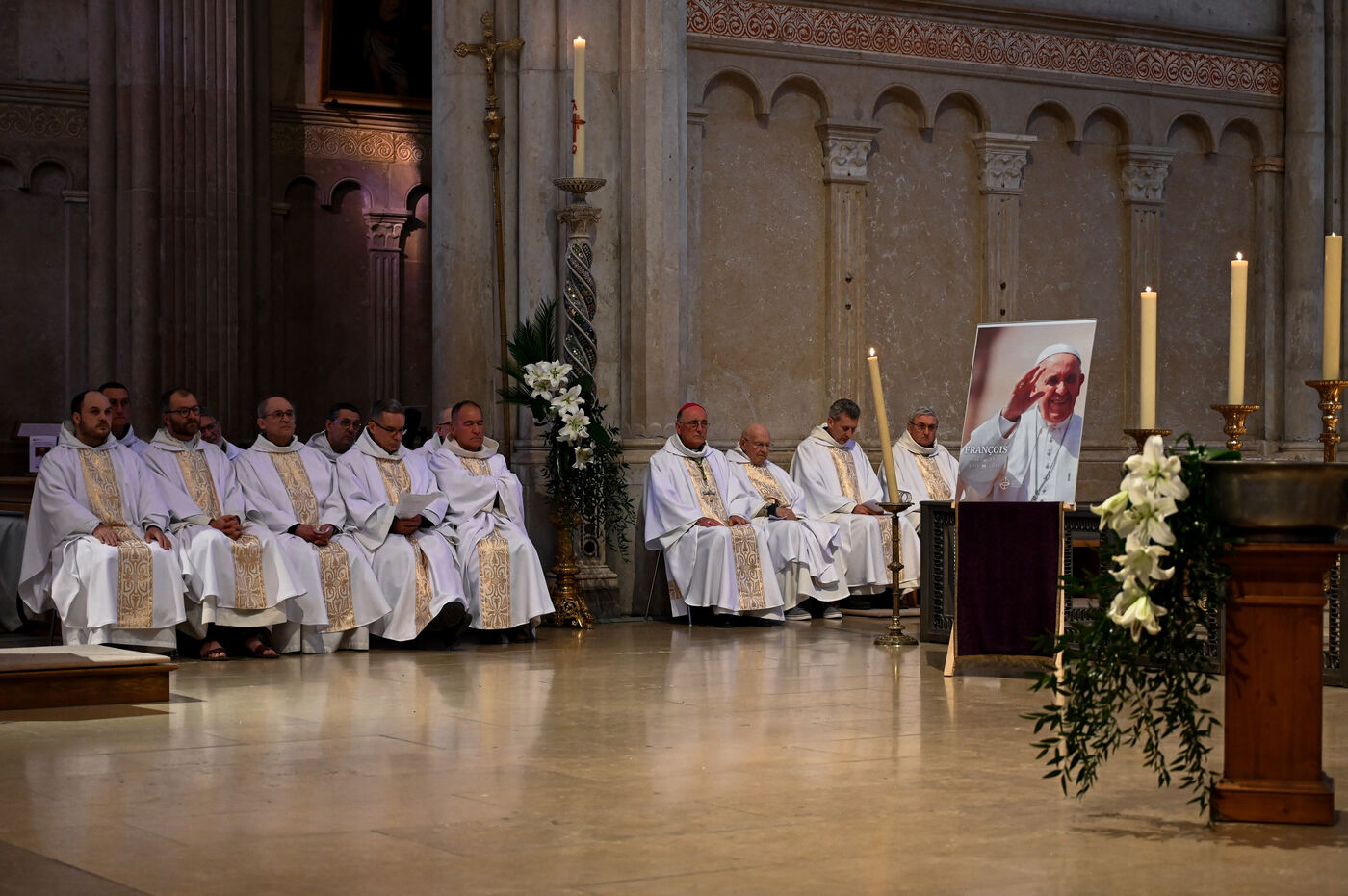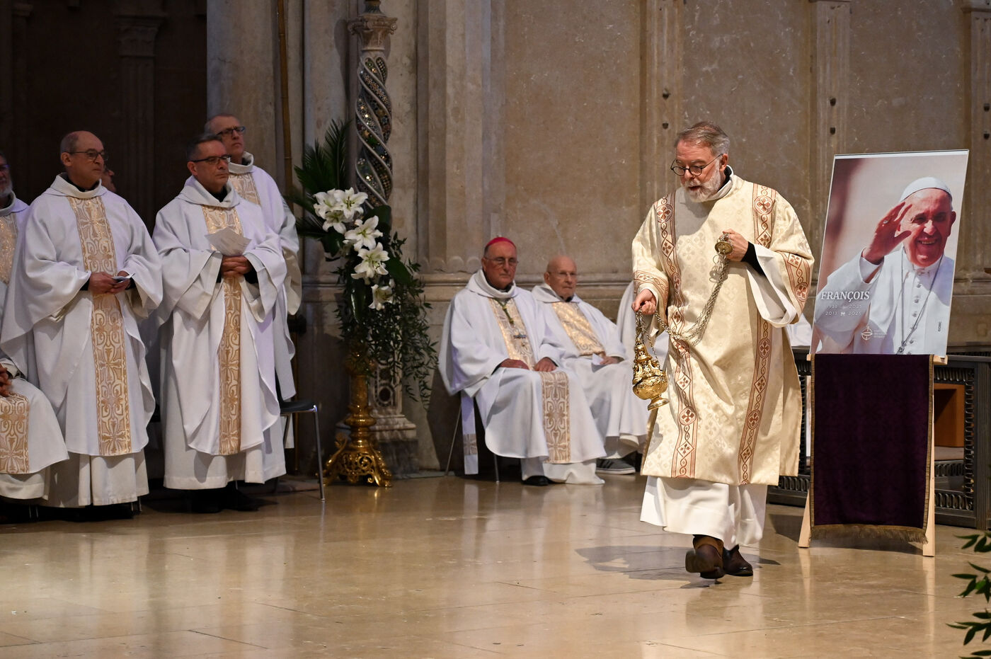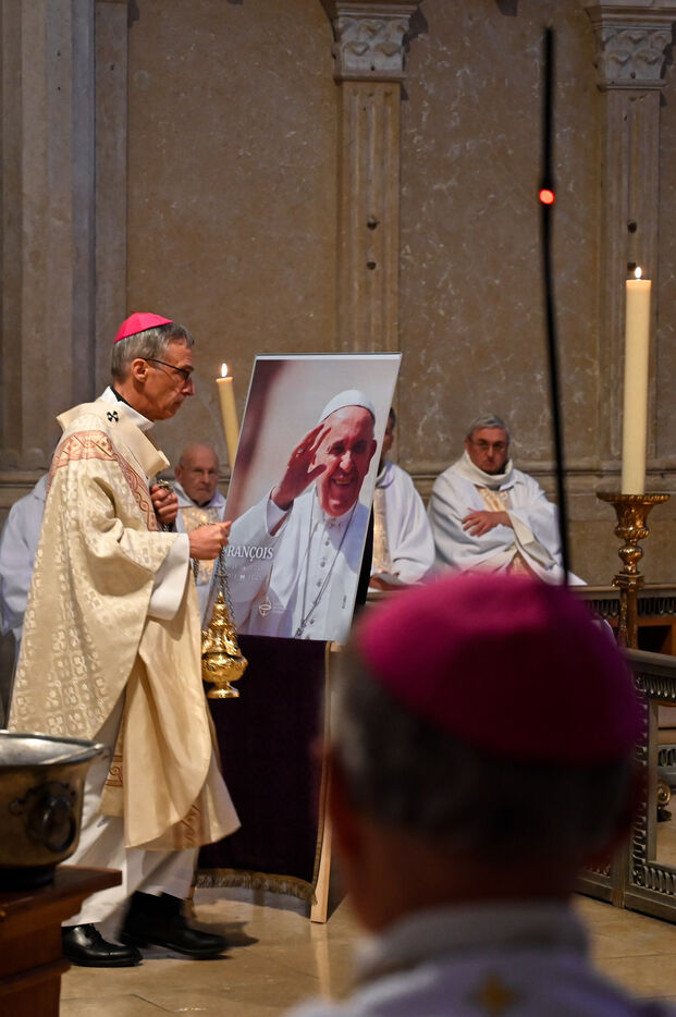 On Tuesday April 22, 2025, Lyon's Saint-Jean-Baptiste Cathedral hosted a mass in tribute to Pope François, who died the day before at the age of 88. The ceremony, presided over by Mgr Olivier de Germay, was attended by a large number of faithful who came to pay their last respects to the pontiff.