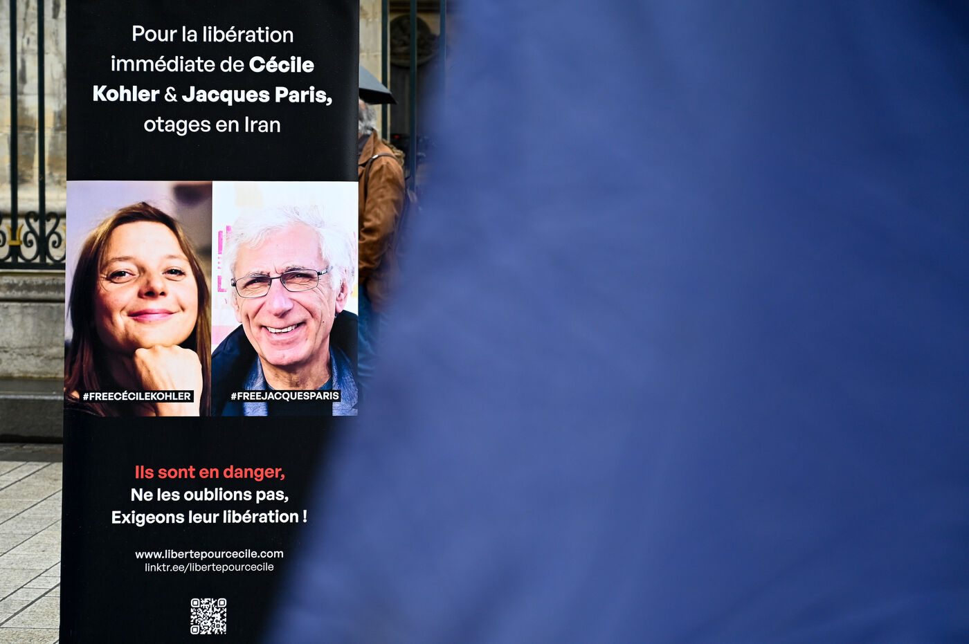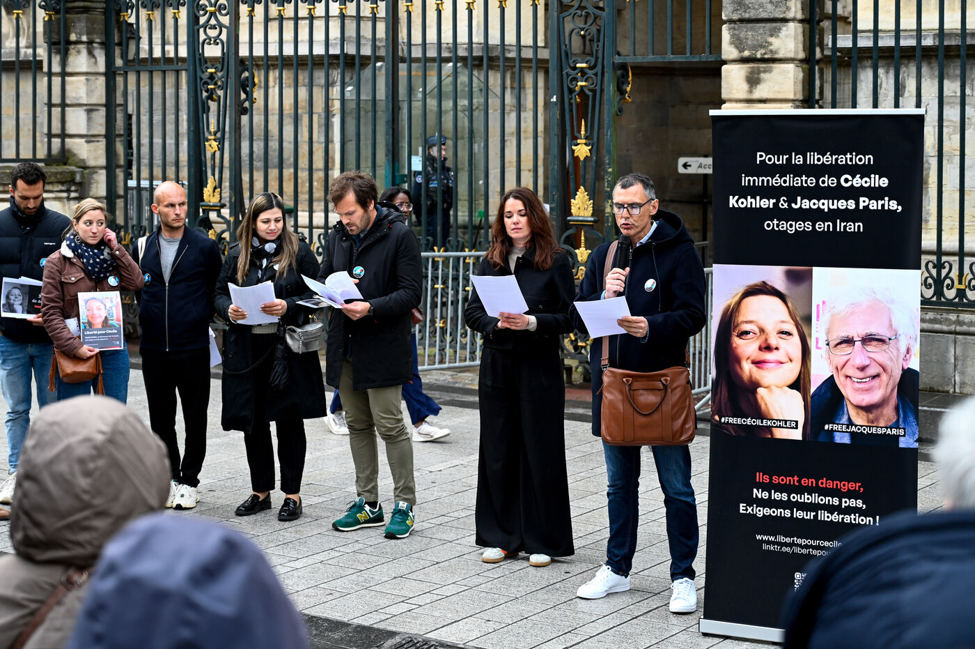On Wednesday, May 7, 2025, to mark the three-year imprisonment of Cécile Kohler and Jacques Paris in Iran, a gathering was held at Comedie Square in Lyon. A modern literature teacher and former mathematics professor, the couple had been arrested on May 7, 2022 in Teheran, accused of espionage by the Iranian authorities, while on a tourist trip.