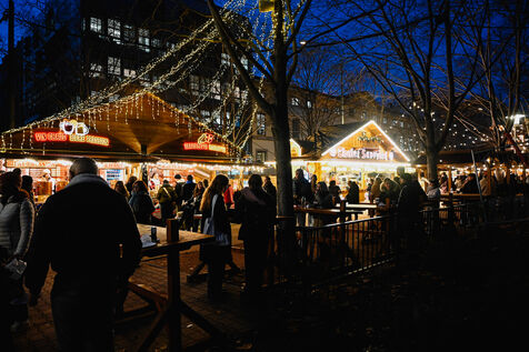 Le Marché de Noël de la place Carnot déroule chaque année son décor lumineux : néons, guirlandes suspendues, sapins brillants, bretzels, vin chaud fumant et foule compacte glissant entre les chalets comme dans une carte postale hivernale. Tout est réuni pour fabriquer la magie de notre enfance.