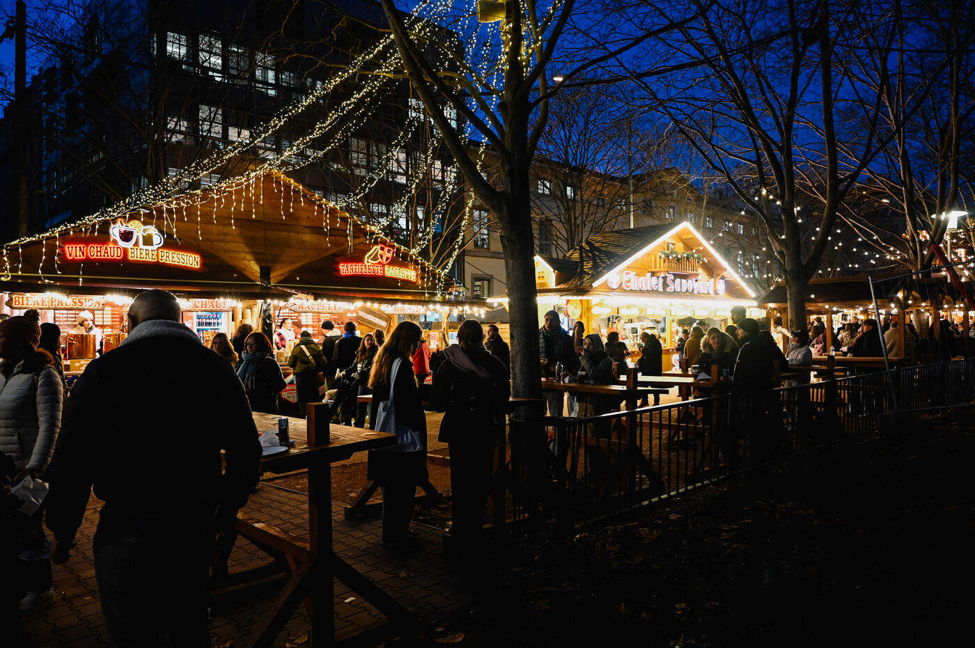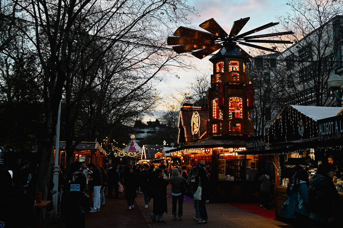 The Christmas Market at Place Carnot unfolds each year in a luminous display: neon signs, hanging garlands, glittering trees, pretzels, steaming mulled wine, and crowds flowing between the chalets like a winter postcard. Everything is set to conjure the magic of our childhood.