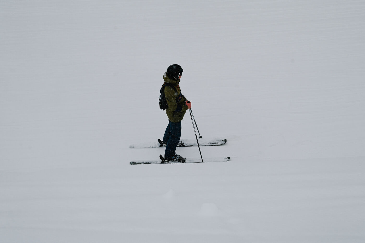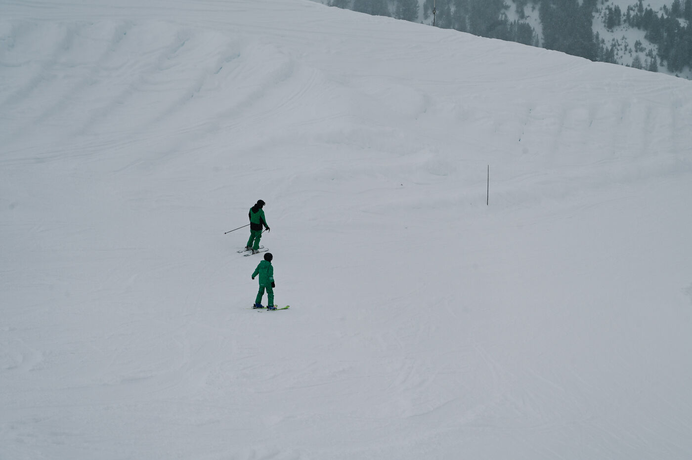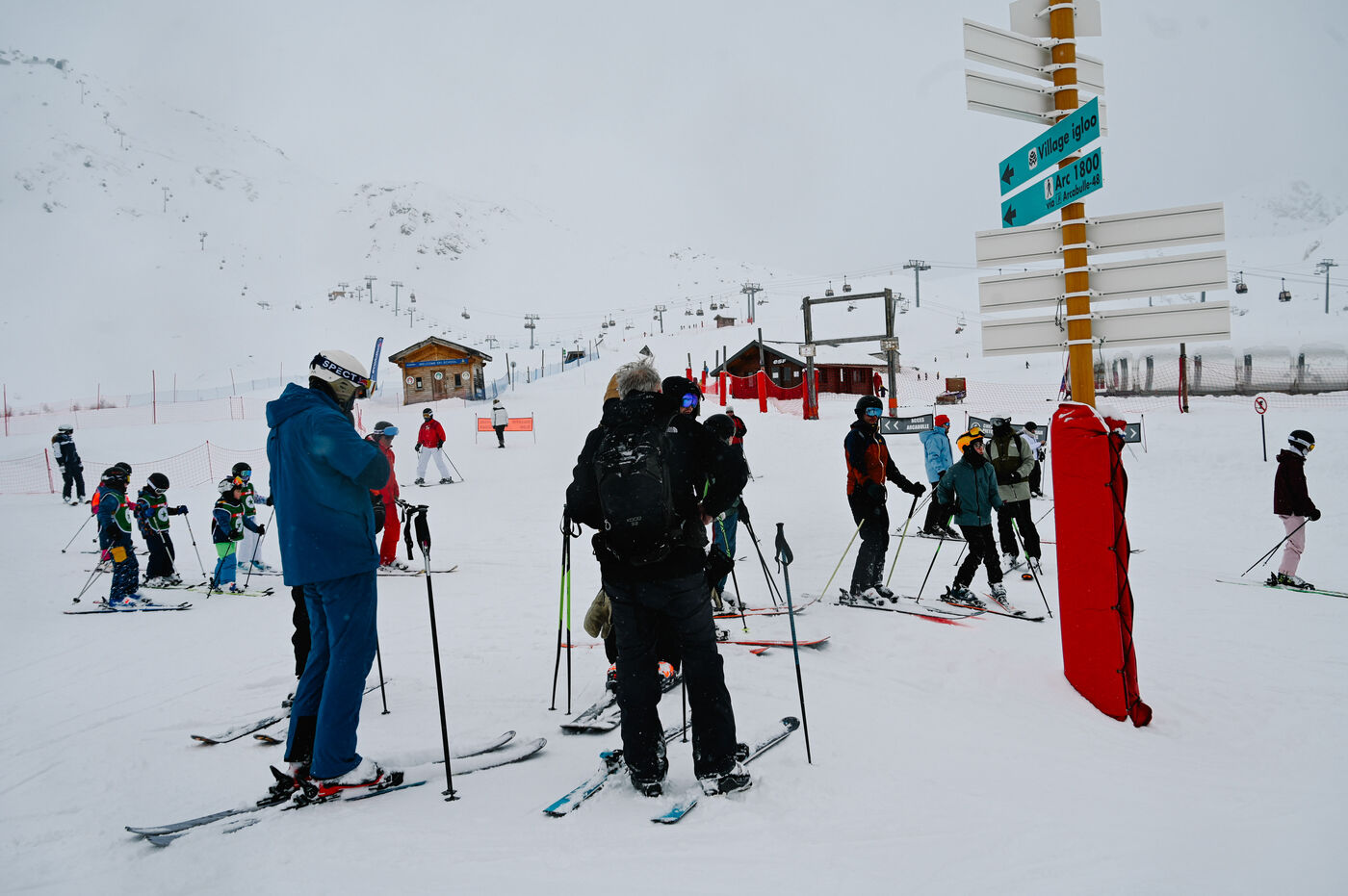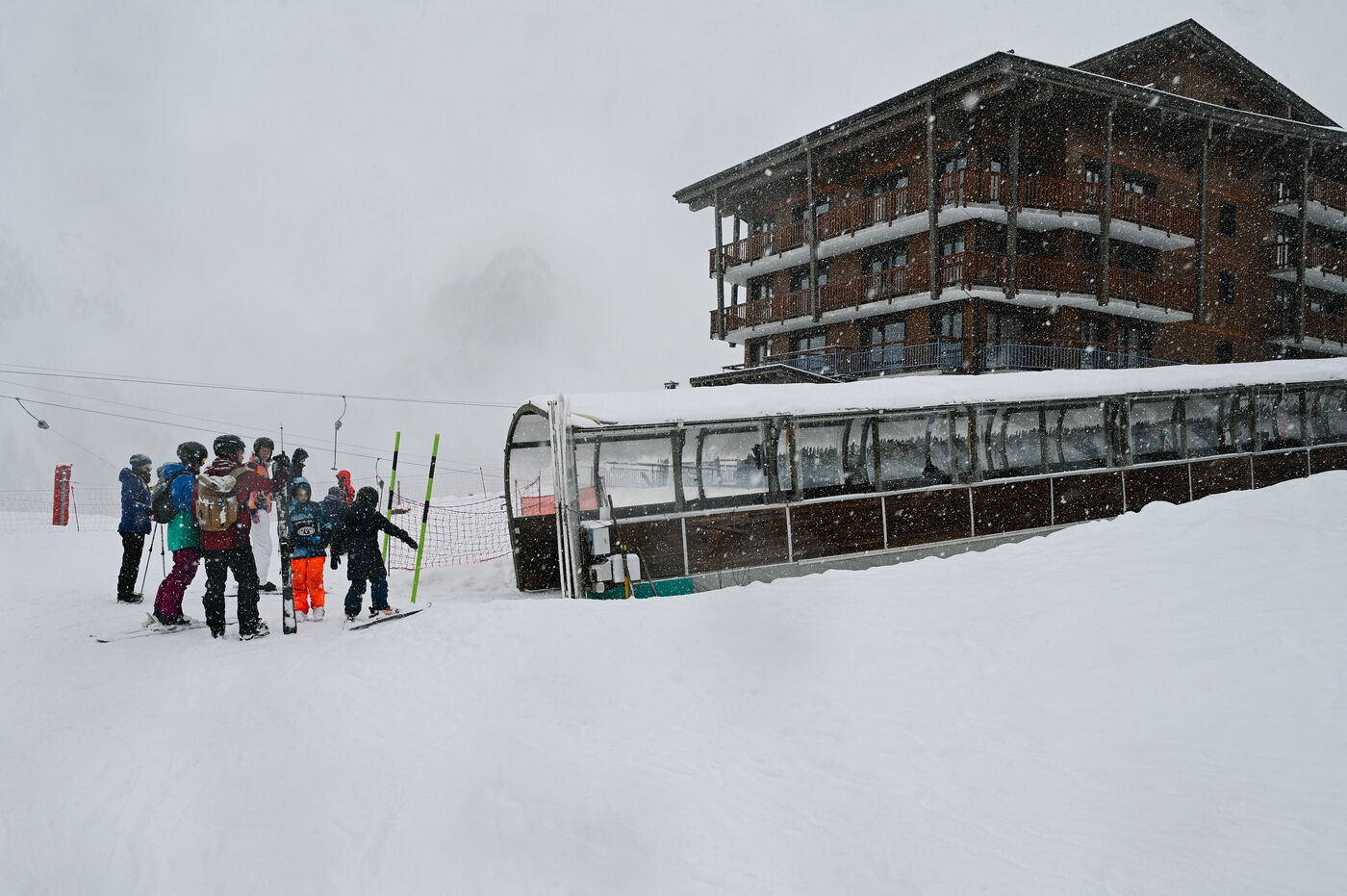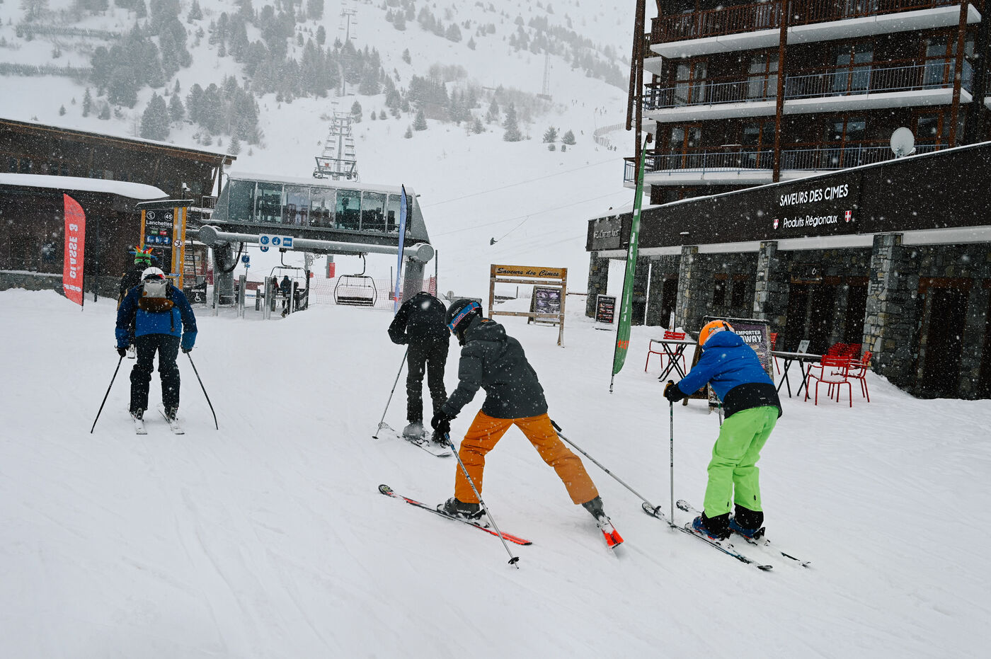 Despite the wind, low visibility and some closures, the area remains active: ESF courses, cautious descents and continuous rotations of the ski lifts punctuate the day.