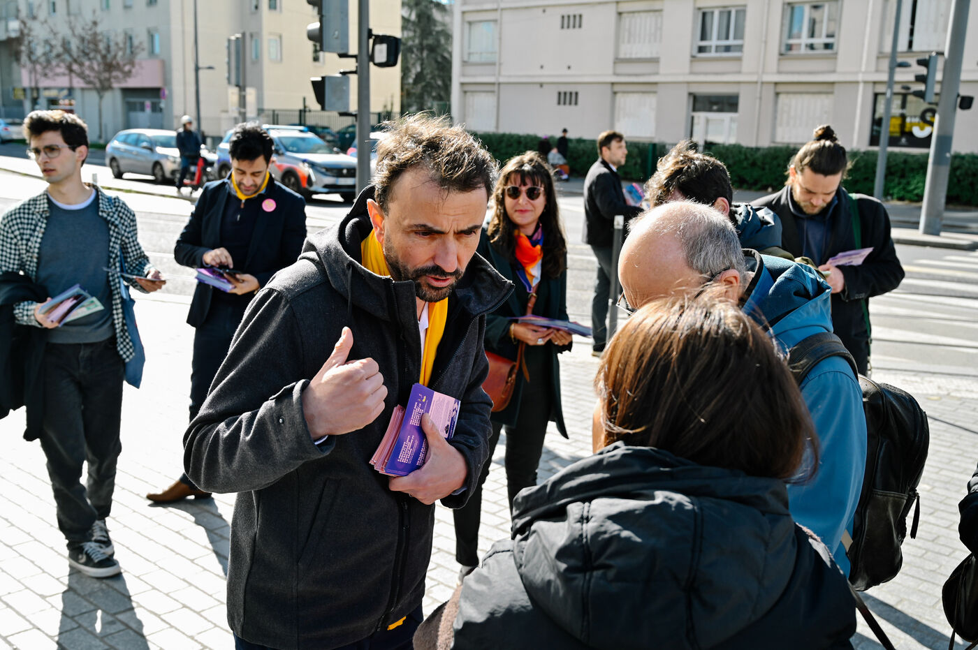 Two days before the first round of the municipal elections in Lyon, on March 13, 2026, the city’s Green mayor and candidate for re-election, Grégory Doucet, carried out a leaflet distribution campaign at a Lyon market alongside campaign activists.