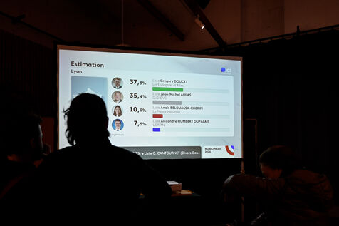 This March 15, 2026, the evening of the first round of the municipal elections in Lyon, the supporters of the Union of the Left and the Ecologists met at their headquarters to follow the announcement of the results live.