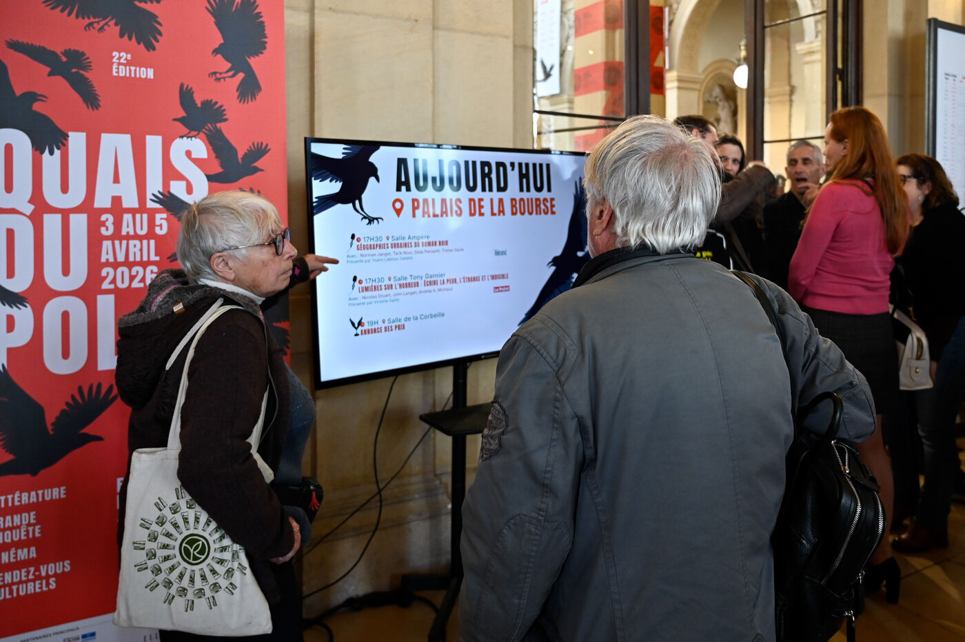À l’occasion de la 22e édition du Quais du Polar, le Palais de la Bourse accueille lecteurs et auteurs dans une atmosphère dense, rythmée par dédicaces et rencontres. Dans les salons du bâtiment, les échanges se multiplient autour du roman noir, entre files d’attente, discussions et livres qui circulent de main en main. Un rendez-vous incontournable qui fait du lieu l’épicentre du polar à Lyon.