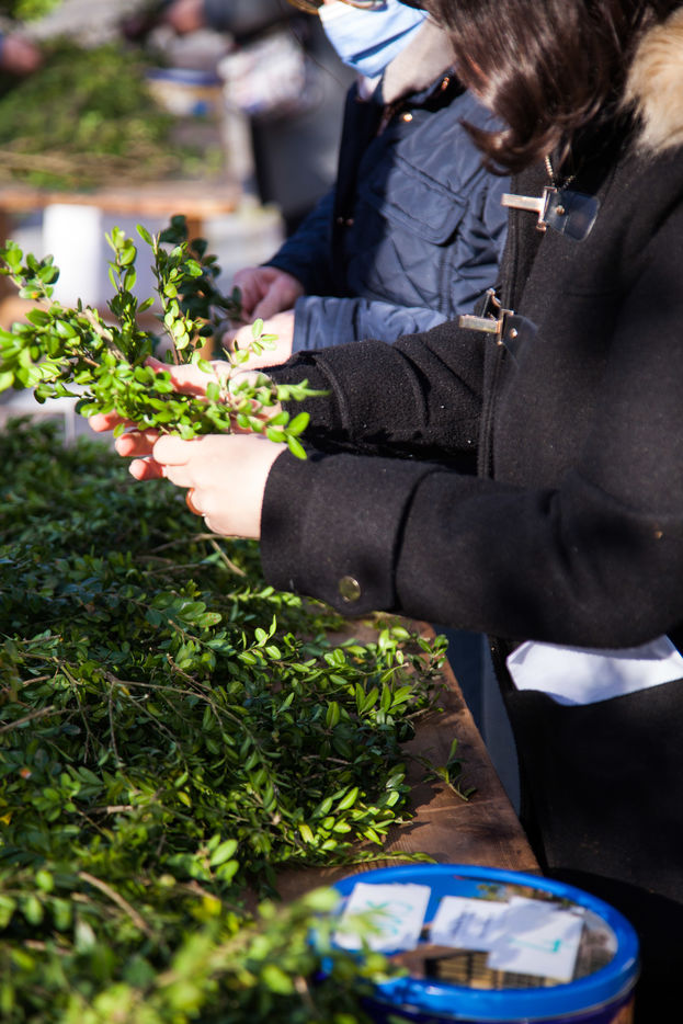 Préparation et distribution des rameaux pour célébrer la Passion du Christ