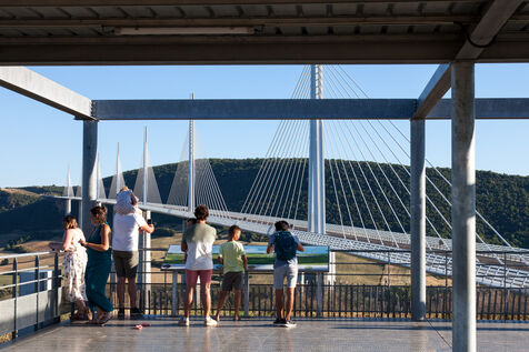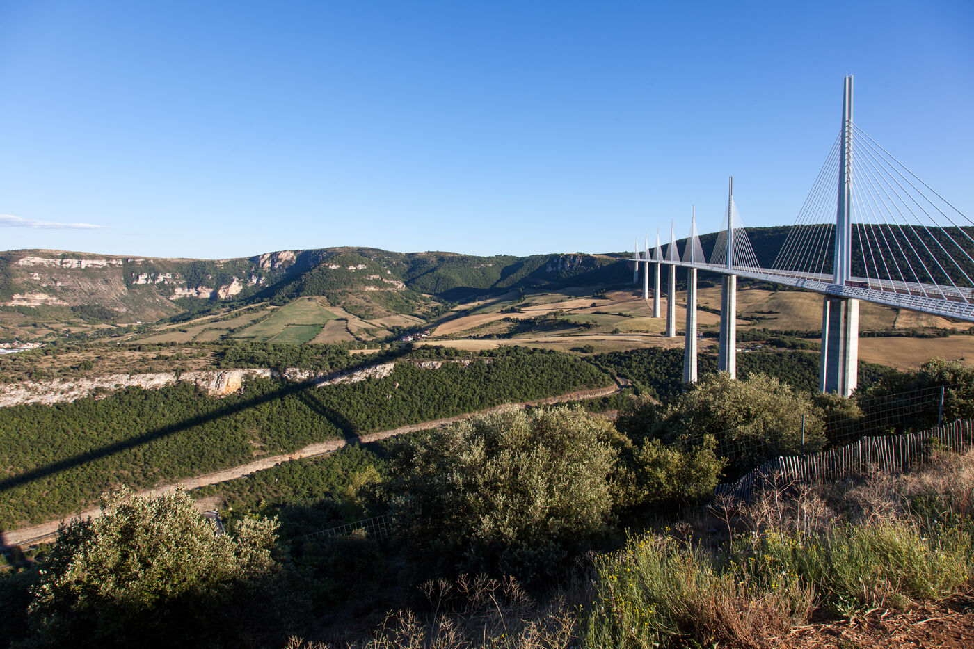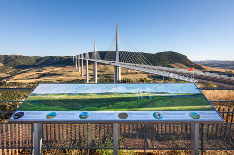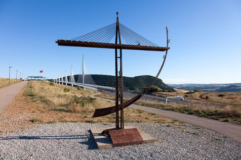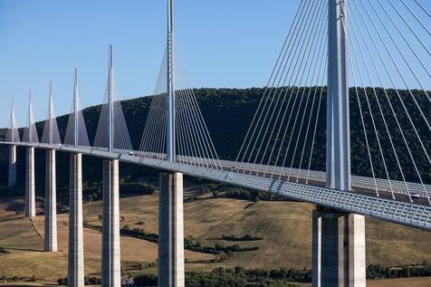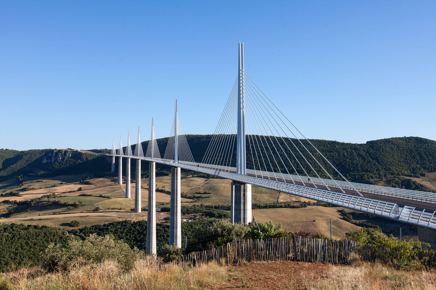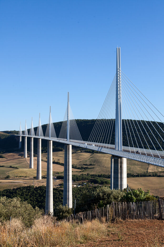 Le viaduc de Millau est un pont à haubans franchissant la vallée du Tarn, dans le département de l'Aveyron, en France. Portant l'A75, il assure la jonction entre le causse Rouge et le causse du Larzac en franchissant une brèche de 2460 mètres de longueur et de 343 mètres de profondeur au point le plus haut, dans un panorama de grande qualité et avec des vents susceptibles de souffler à plus de 200 km/h.