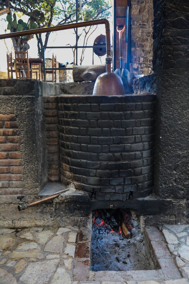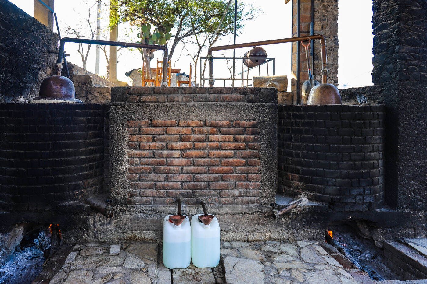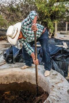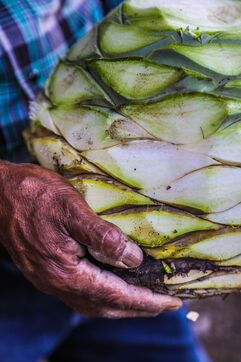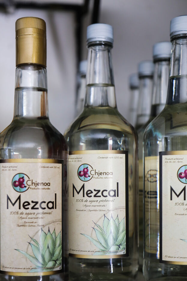 Making mezcal in Puebla, Mexico, is an artisanal process handed down from generation to generation. Agave hearts, known as piñas, are harvested and then cooked in pits dug in the ground. After cooking, they are crushed and fermented before being distilled in copper stills. The result is a mezcal rich in flavor, reflecting the region's unique terroir.