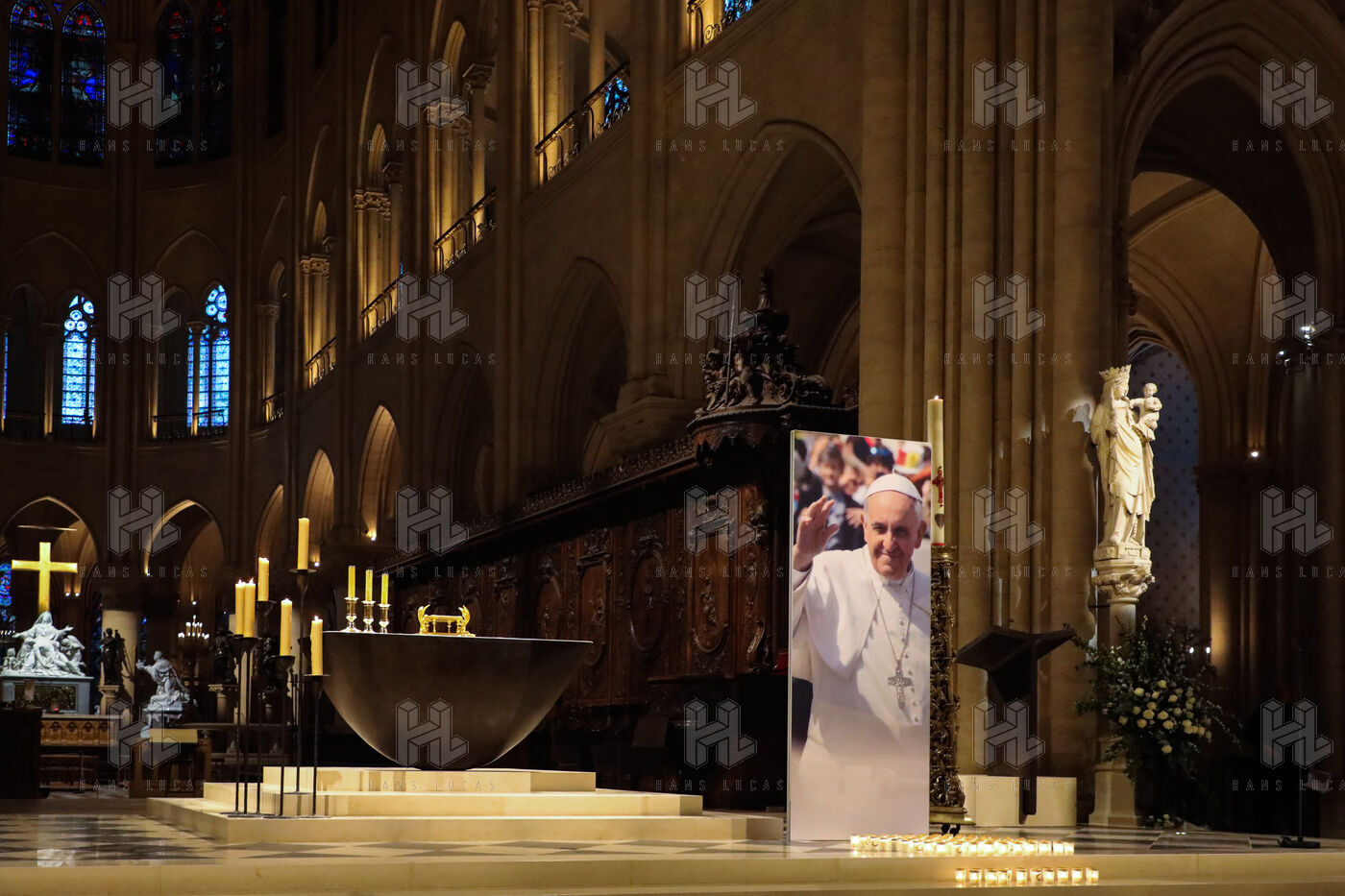 On the occasion of Pope Francis’s passing, Notre-Dame Cathedral in Paris paid tribute to the pontiff with several ceremonies: the bells rang 88 times at 11 a.m., followed by two Masses at 12 p.m. and 6 p.m., a rosary at 7 p.m., and a prayer vigil from 8 p.m. to midnight. The faithful gathered to pray for the repose of his soul in an atmosphere of deep emotion.