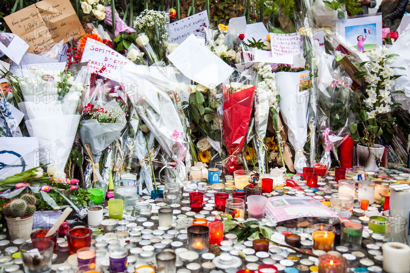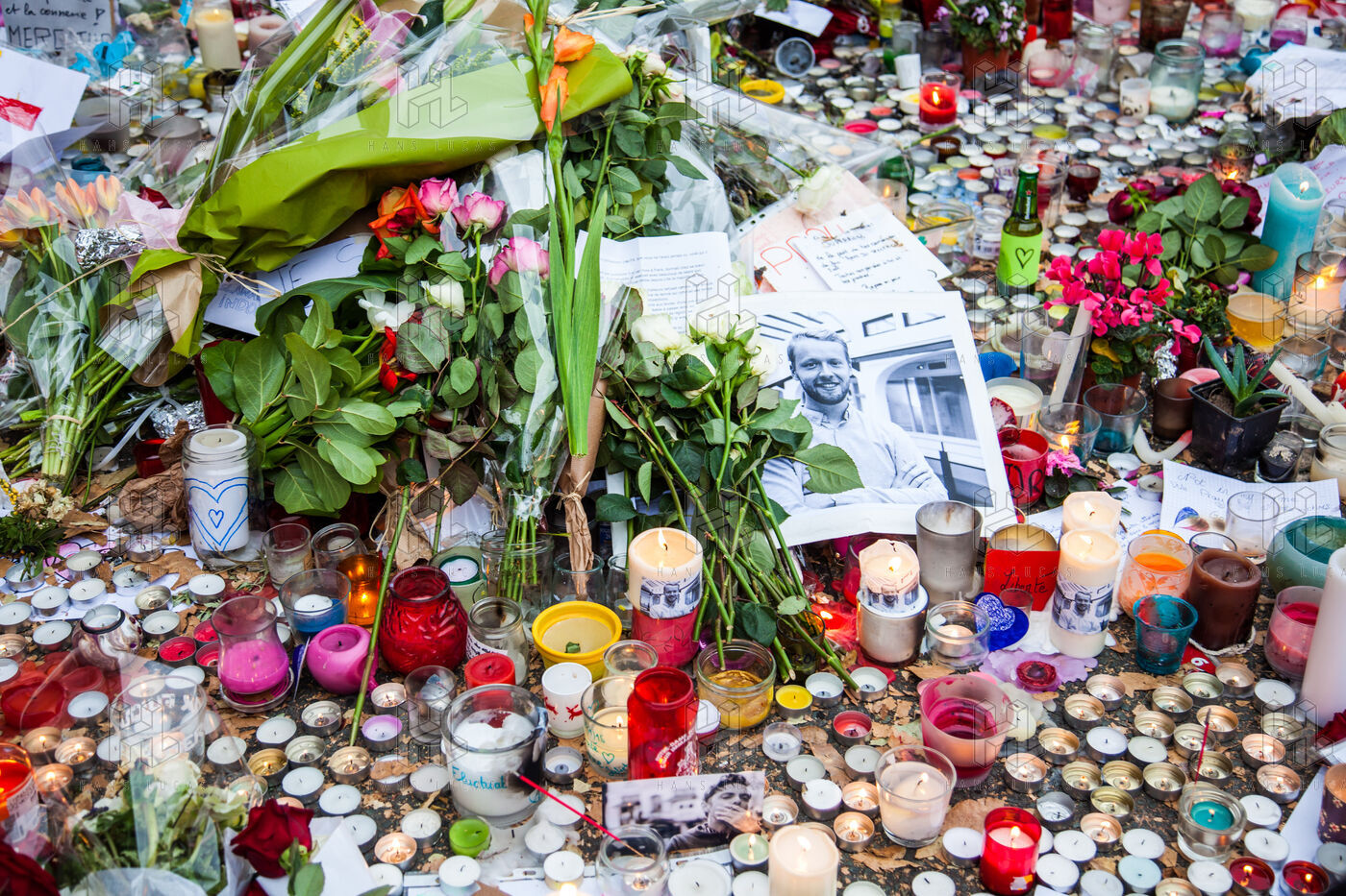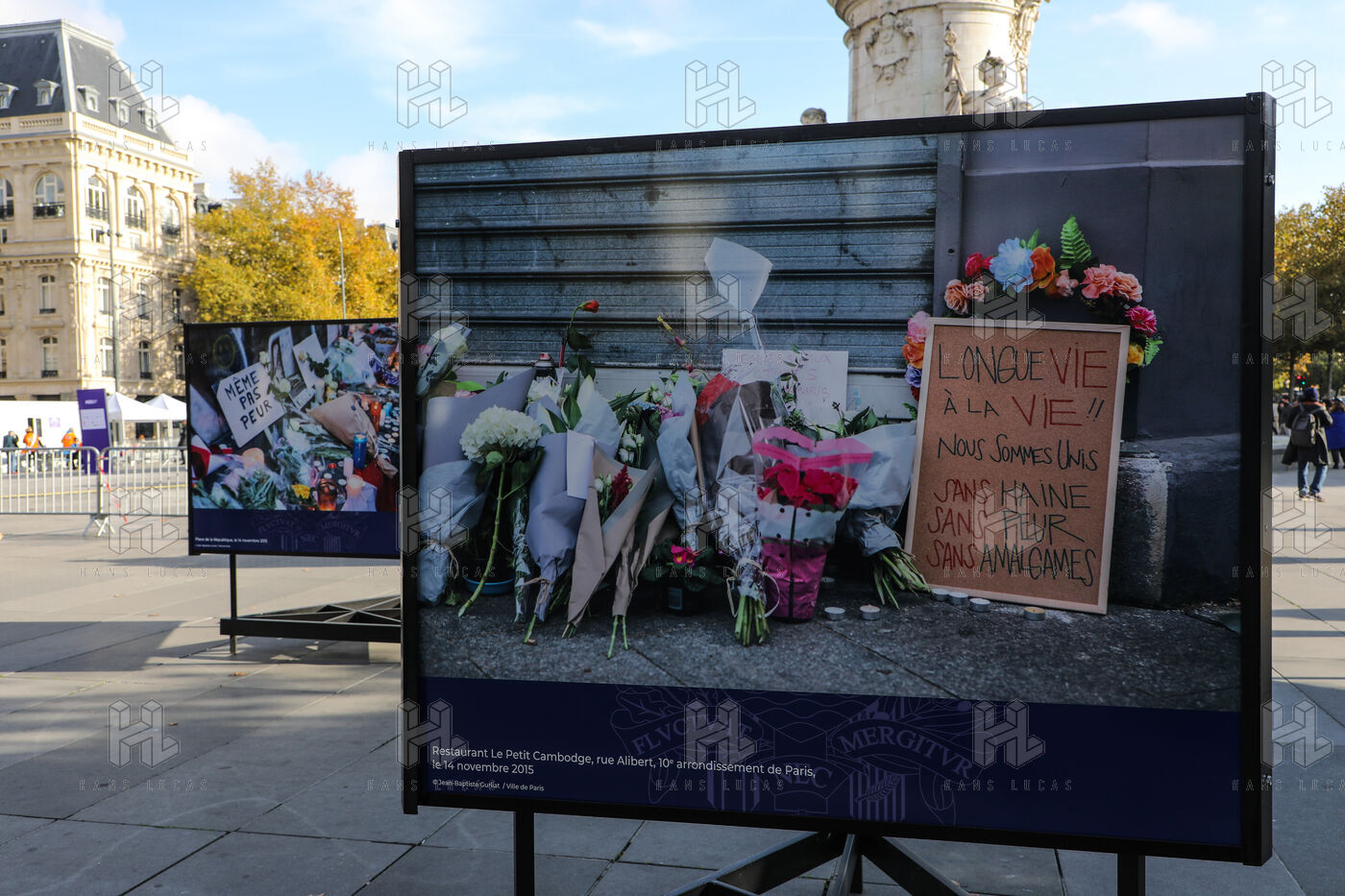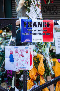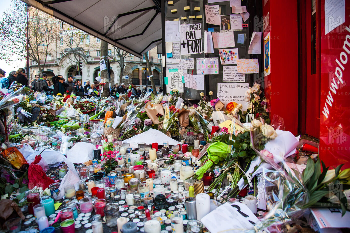 Suite aux attentats terroristes islamistes coordonnés du 13 novembre 2015, revendiqués par le groupe Daech, qui ont fait 130 morts et des centaines de blessés, la population a témoigné d'un élan d'hommage et de solidarité exceptionnel. Des autels spontanés de fleurs, de bougies, et de messages ont recouvert les trottoirs et les places, notamment à la Place de la République, symbolisant le deuil et la résistance de la nation. Ces attaques ont frappé plusieurs lieux emblématiques de la vie parisienne et en banlieue : le Stade de France (Saint-Denis) avec trois explosions-suicides qui se sont produites aux abords du stade pendant un match de football amical, le Bataclan où l'attaque la plus meurtrière a eu lieu et où un commando a tiré sur la foule et pris des otages, les terrasses de plusieurs bars et restaurants (10e et 11e arrondissements) où des tireurs ont ouvert le feu sur les clients (Le Carillon, Le Petit Cambodge, La Bonne Bière, Casa Nostra, La Belle Équipe). Au Comptoir Voltaire, un kamikaze s'est fait exploser. Ces attentats, visant des lieux de rassemblement et de culture, ont été la séquence terroriste la plus meurtrière de l'histoire de France.