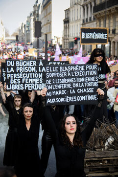 Le happening des sorcières du collectif SCUM a marqué la manifestation féministe du 8 mars 2026 à Paris. Des activistes habillées en sorcières ont simulé un bûcher pour dénoncer la détention au Maroc d'Ibtissame « Betty » Lachgar. Emprisonnée pour un t-shirt « Dieu est lesbienne », elle symbolise l'oppression religieuse des femmes. Cette performance choc a appelé à sa libération immédiate.