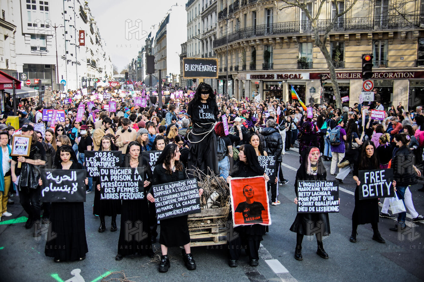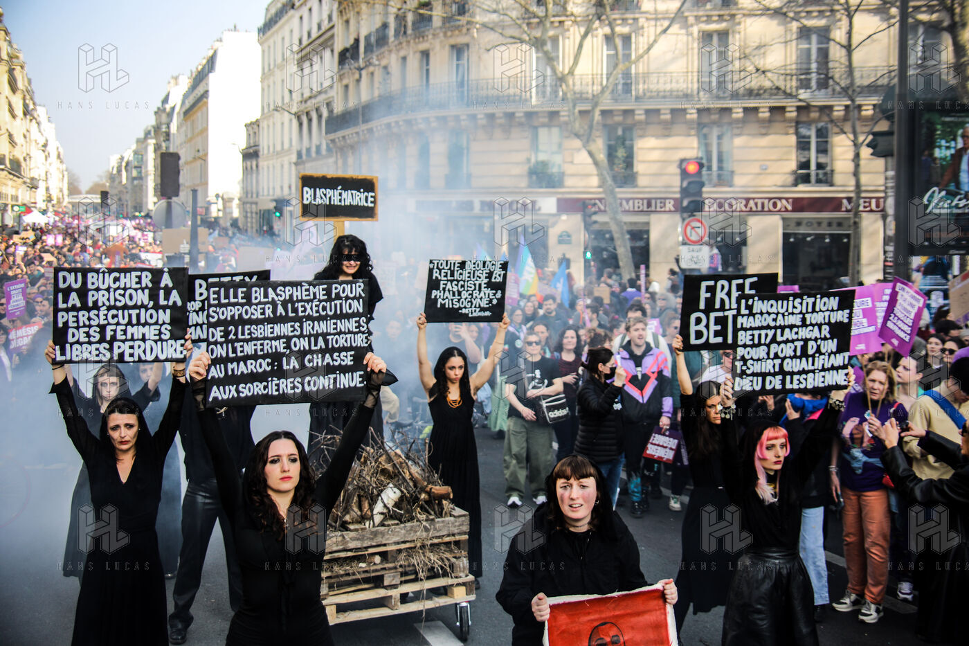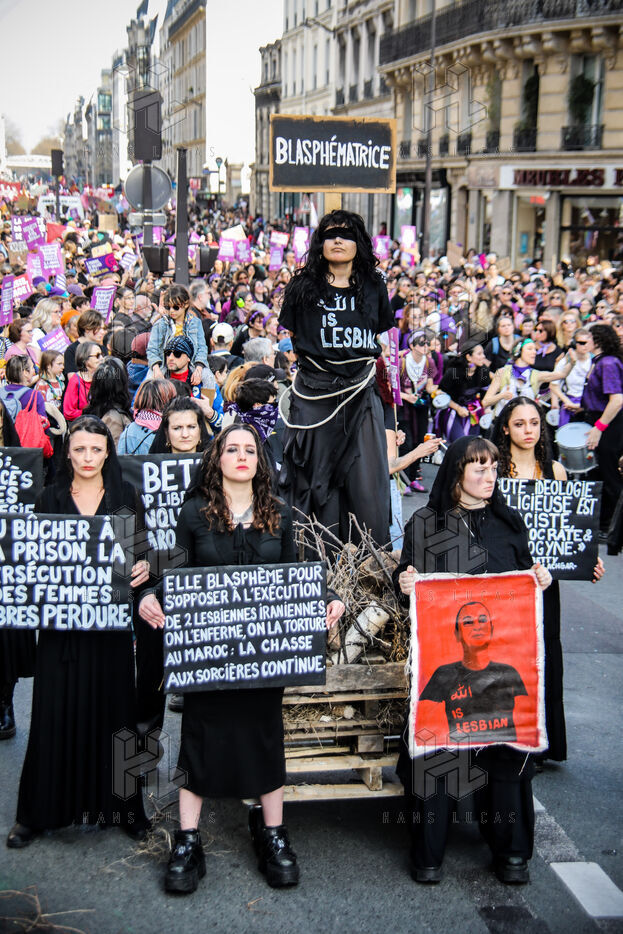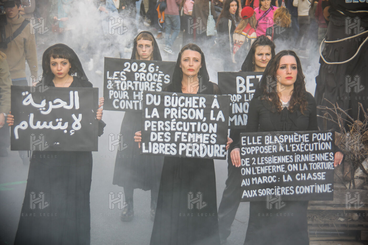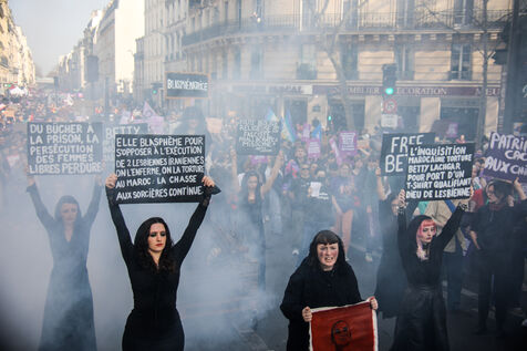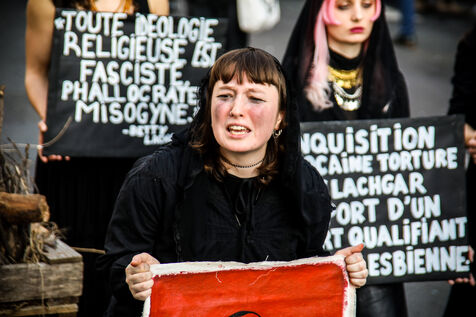 The SCUM collective's witch happening marked the feminist demonstration on March 8, 2026, in Paris. Activists dressed as witches staged a mock pyre to denounce the detention in Morocco of Ibtissame "Betty" Lachgar. Imprisoned for a t-shirt reading "God is lesbian," she symbolizes religious oppression of women. This shocking performance called for her immediate release.