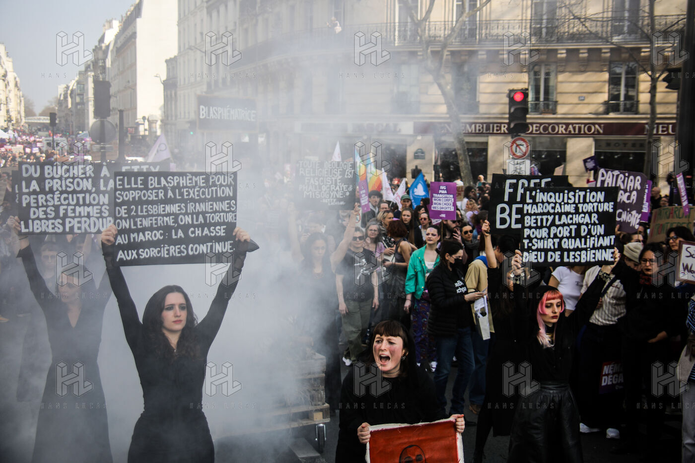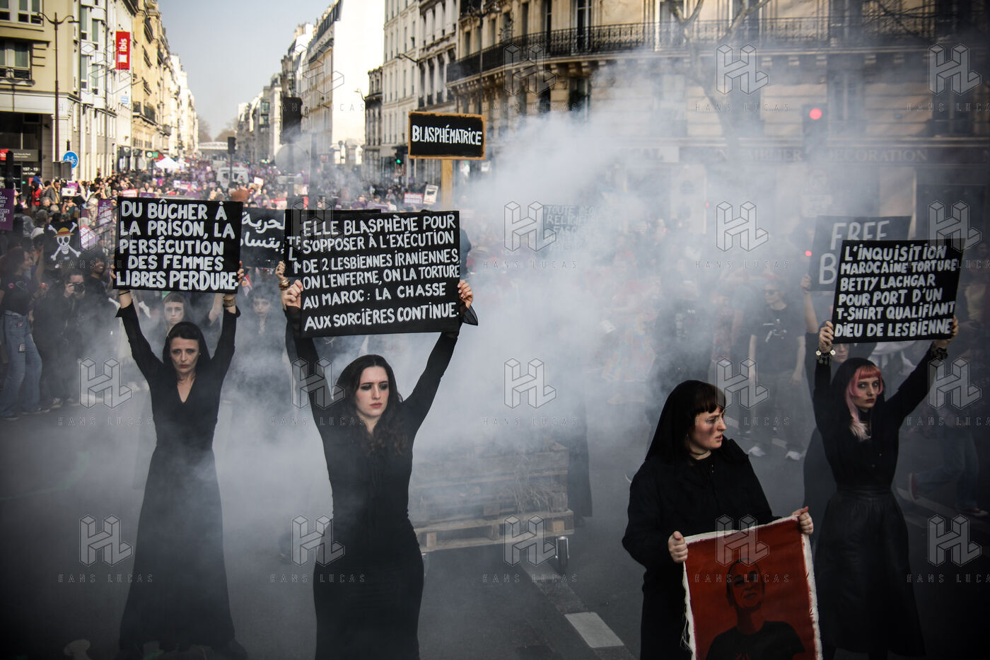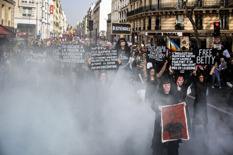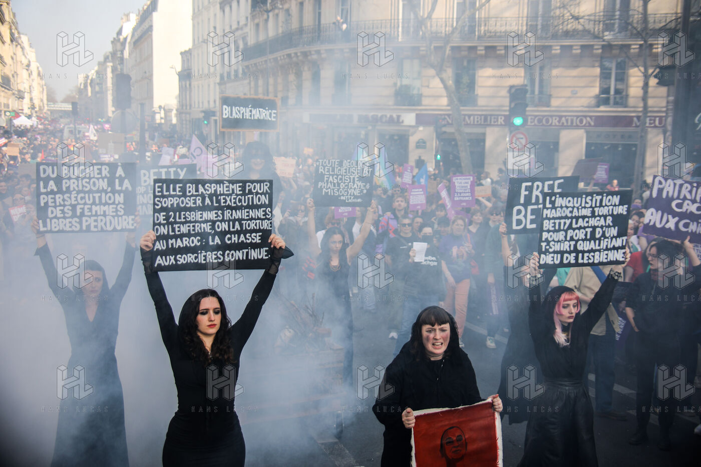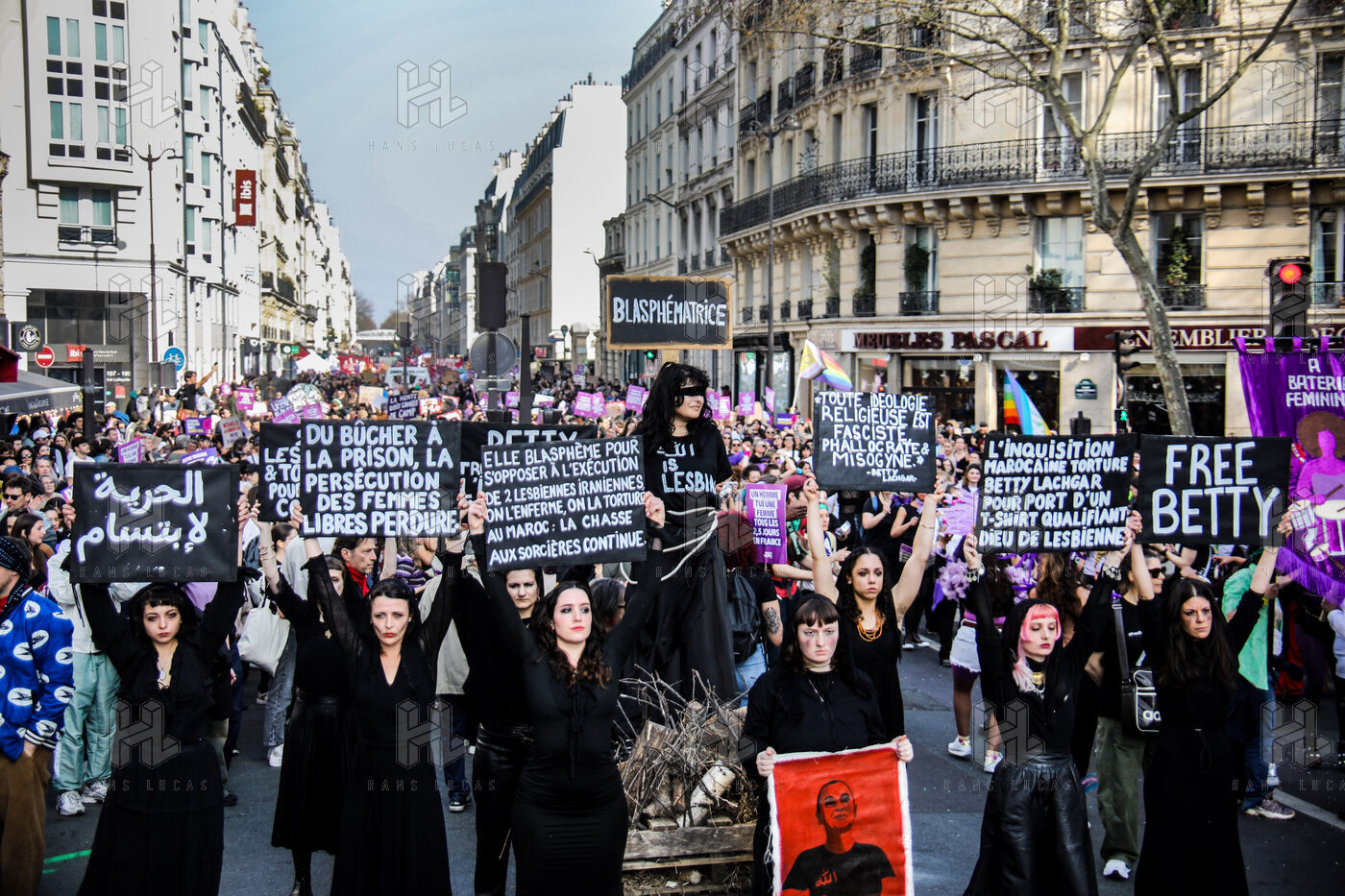 The SCUM collective's witch happening marked the feminist demonstration on March 8, 2026, in Paris. Activists dressed as witches staged a mock pyre to denounce the detention in Morocco of Ibtissame "Betty" Lachgar. Imprisoned for a t-shirt reading "God is lesbian," she symbolizes religious oppression of women. This shocking performance called for her immediate release.