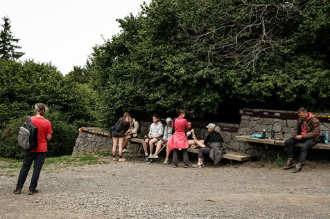 Randonneurs et petits mouchoirs au Puy de Dôme